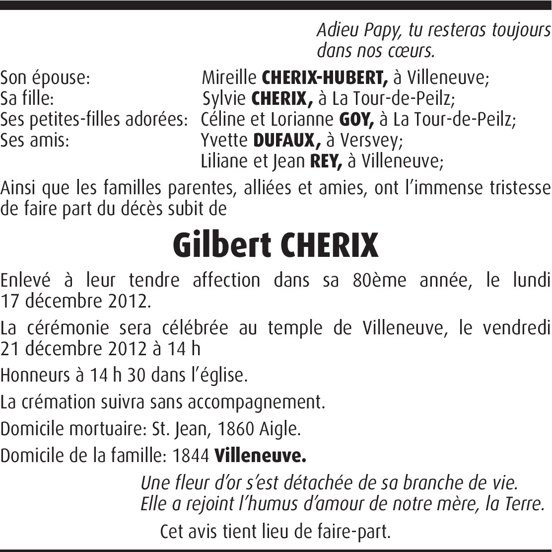 Vous souhaitez rester informé des nouveaux avis et condoléances pour ce défunt ?