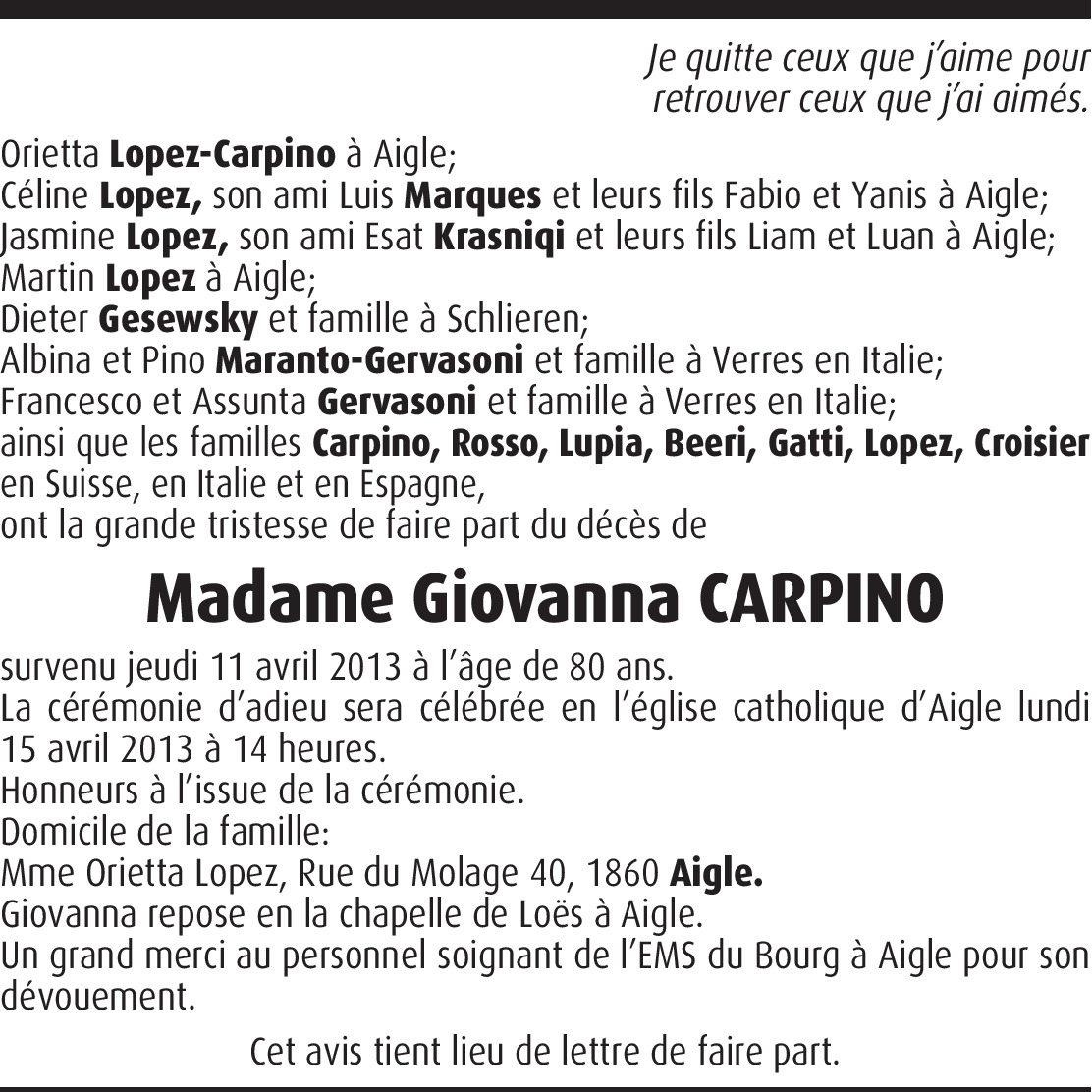 Dernière condoléances