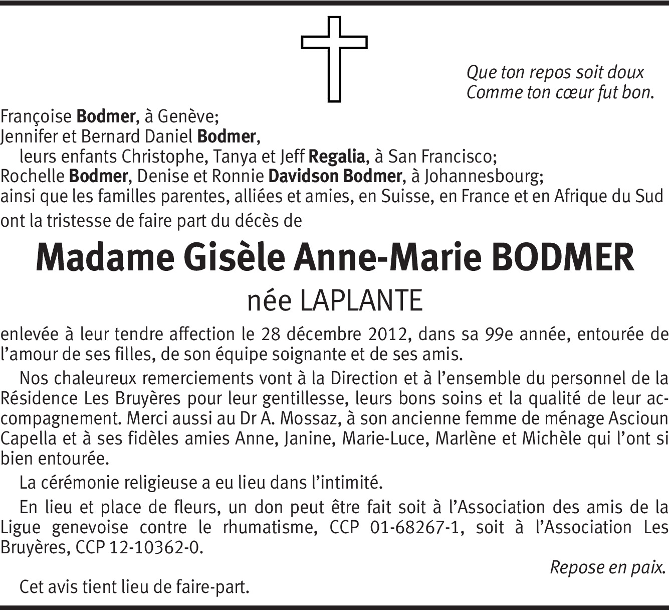 Gisèle Anne-Marie Bodmer Laplante