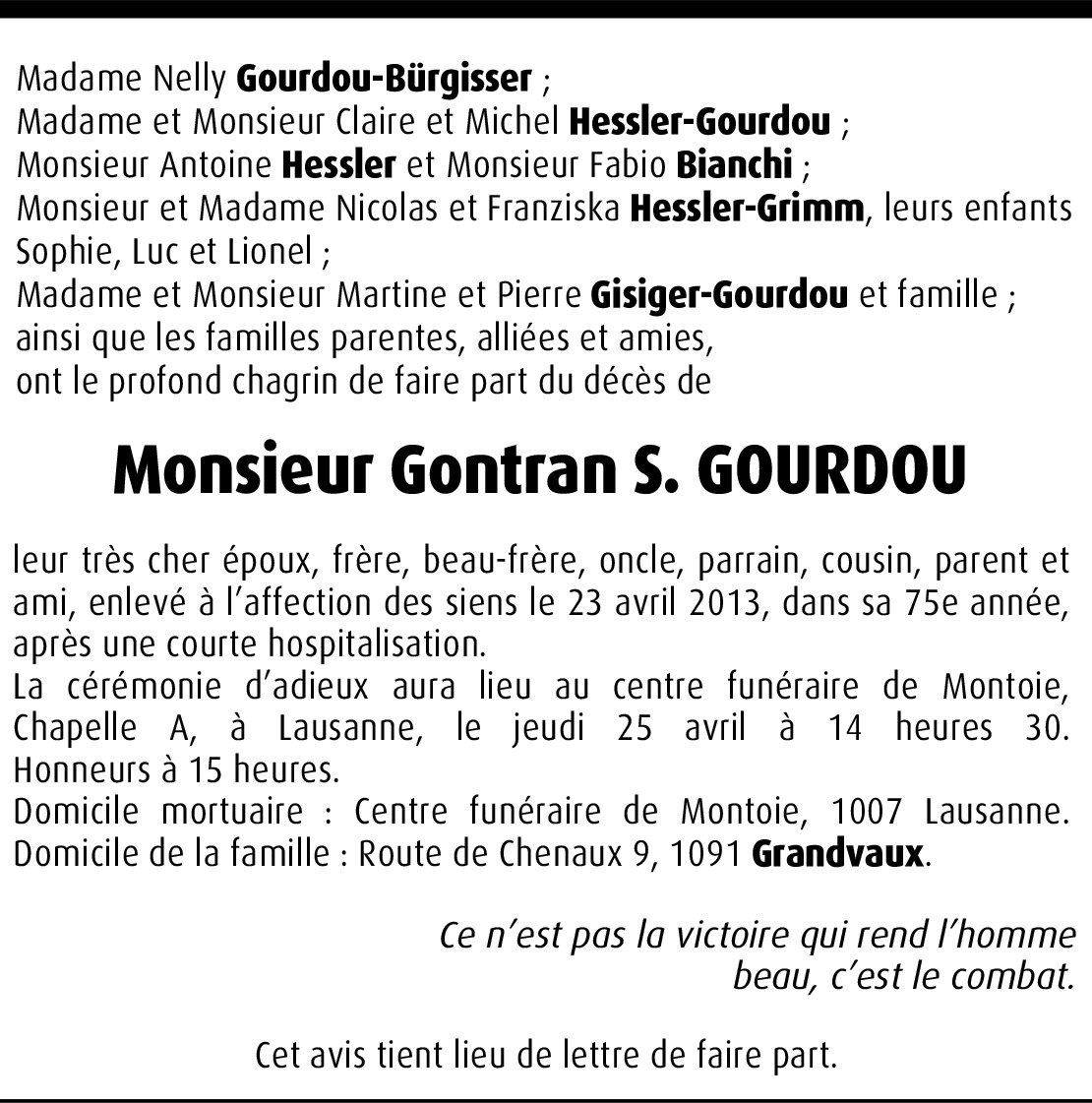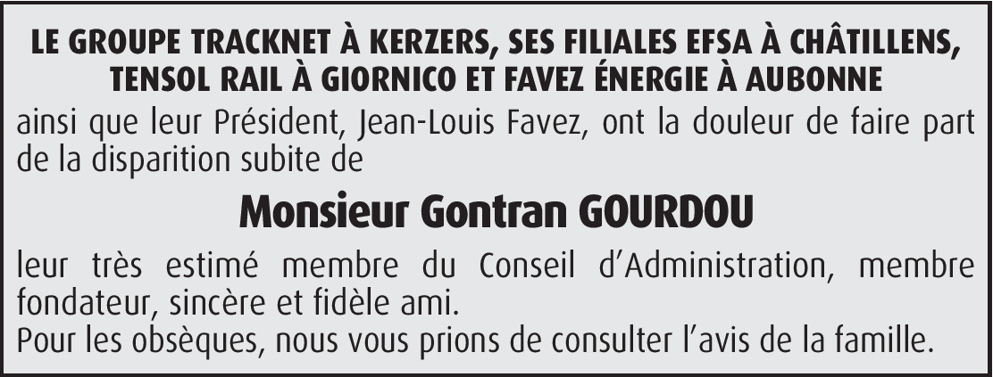 Il y a plus de 4 ans Signaler Chère Madame Gourdou, c'est avec grande tristesse que j'ai appris la nouvelle... J'espère que vous êtes bien entourée d'amis et de famille pour vous aider à supporter cette épreuve. De tout coeur avec vous... Marie De la part de Marie Jirousek