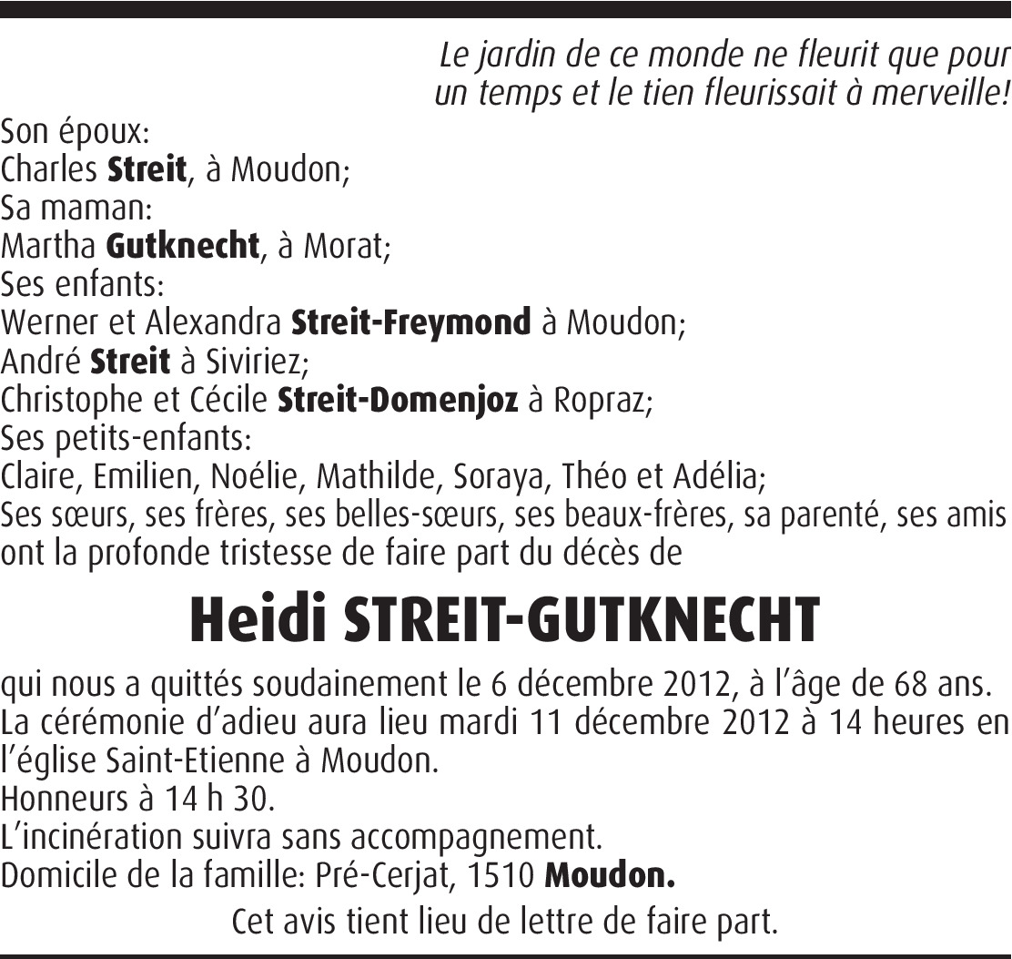 Liebe Trauerfamilien, mit Bestürzung und Trauer habe ich durch Therese vom Hinschied von Heidi vernommen. Wir waren ja in unseren Jugendjahren gut befreundet.; umso mehr schmerzt es mich, das ich heute an der Trauerfeier wegen einer Kiferoperation nicht dabei sein konnte. Ich wünsche Euch in diesen dunklen Tagen der Trauer viel Kraft und Trost. Ich bin in Gedanken mit Euch verbunden. Liebe Grüsse Ueli Johner