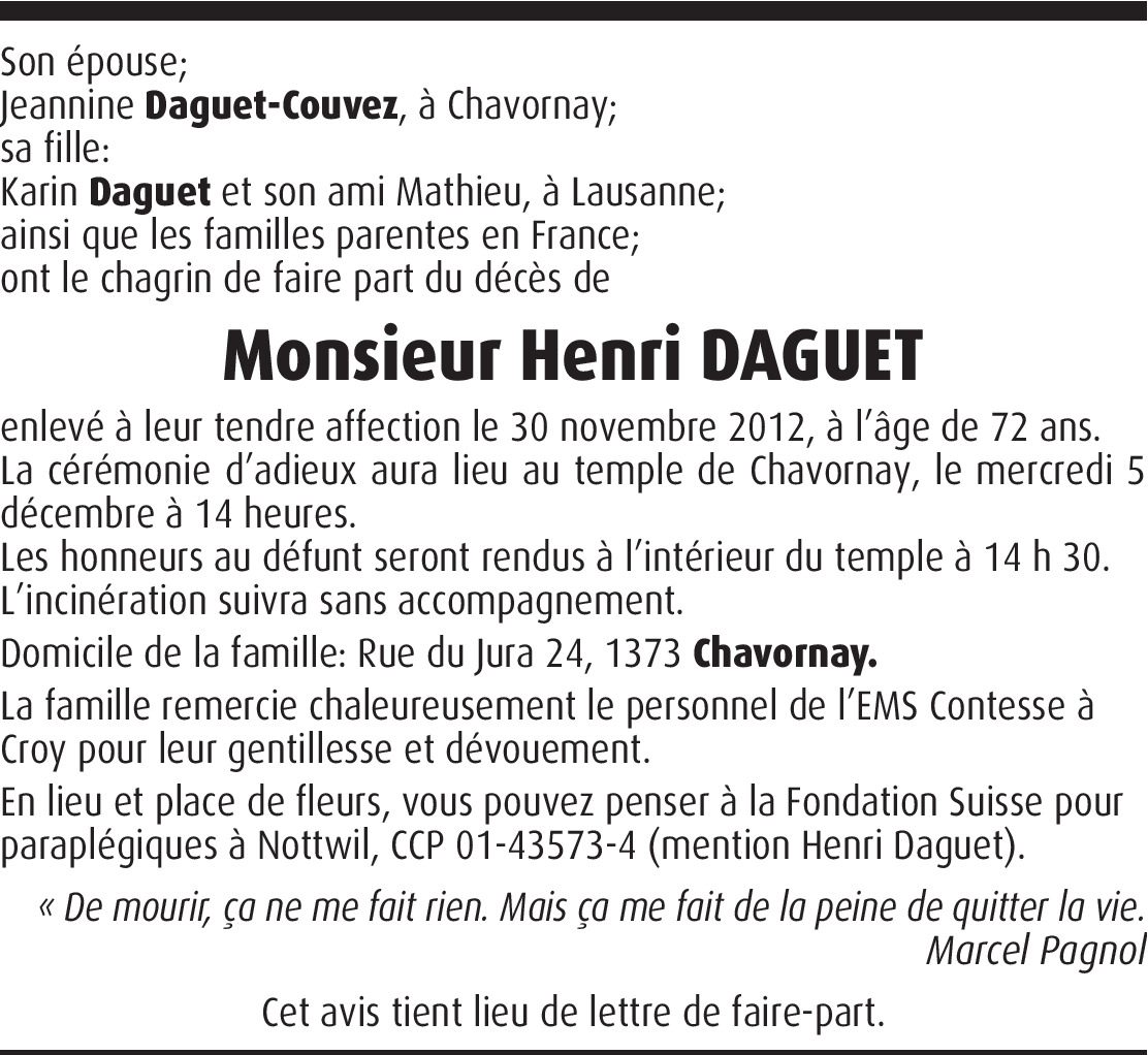 Il y a plus de 4 ans Signaler Recevez, en famille, notre profonde sympathie. De la part de Marcel et Marlyse Ermini-Desponds