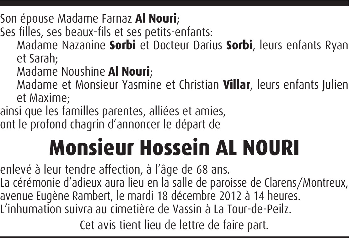 Vous souhaitez rester informé des nouveaux avis et condoléances pour ce défunt ?