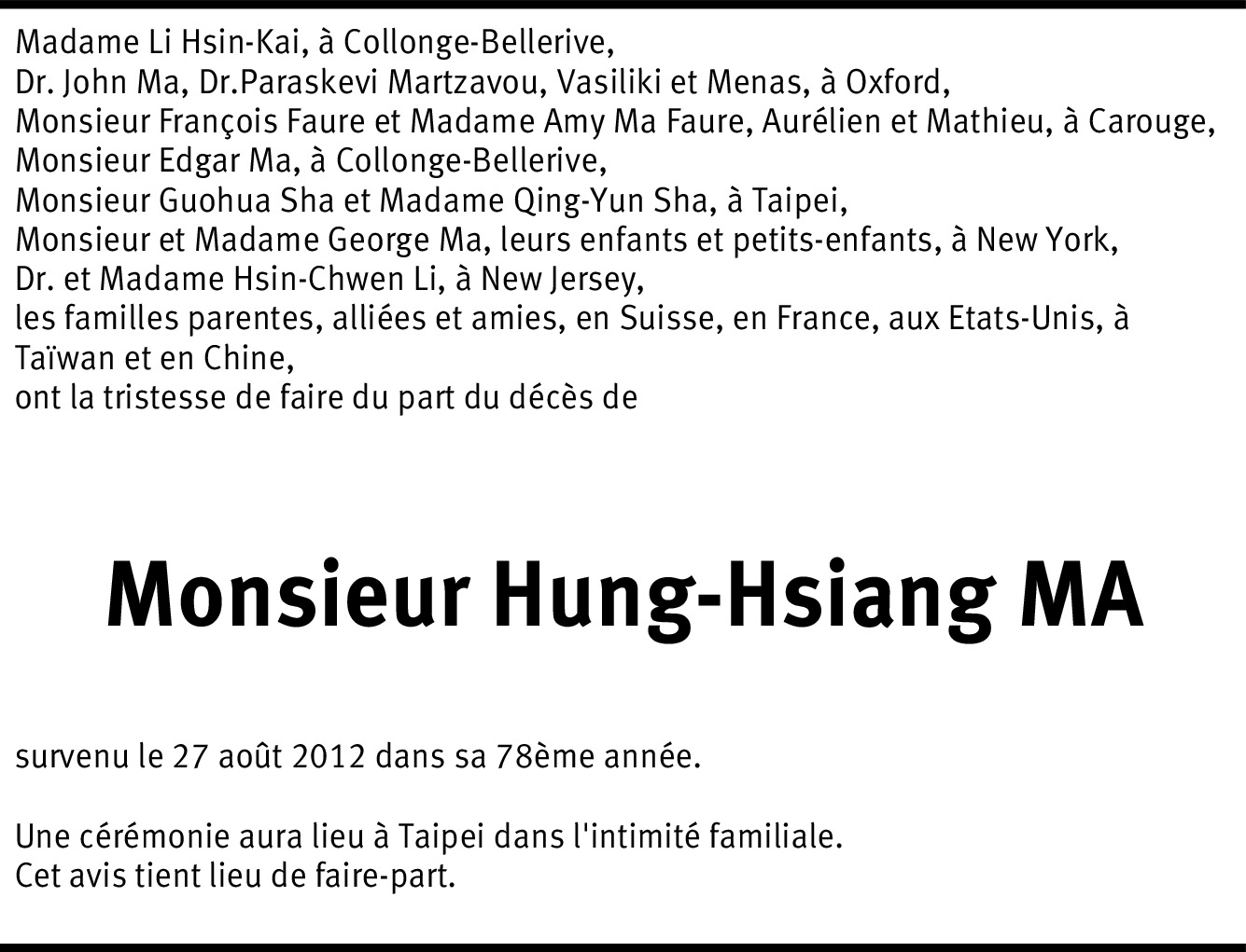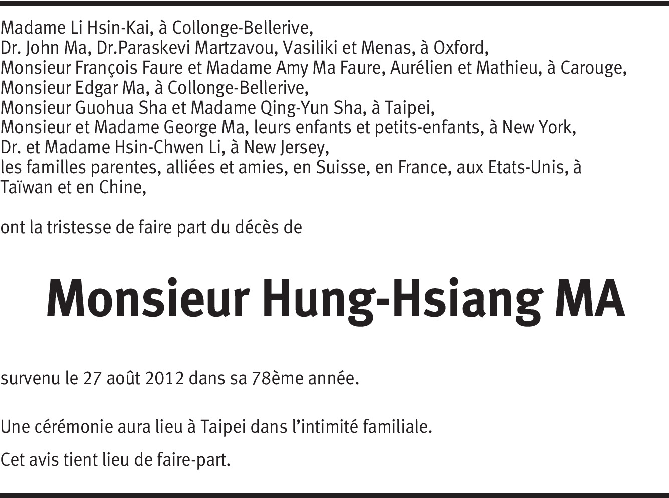 Vous souhaitez rester informé des nouveaux avis et condoléances pour ce défunt ?