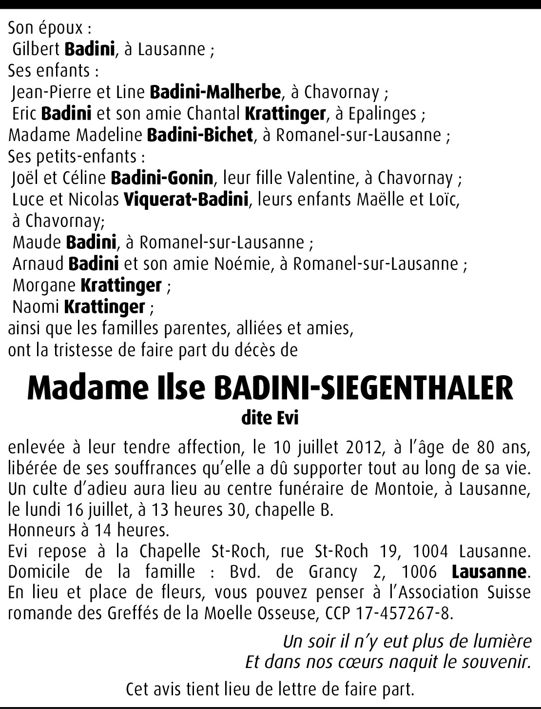 Il y a plus de 4 ans Signaler Recevez, en famille, notre profonde sympathie. De la part de Marcel et Marlyse Ermini-Desponds