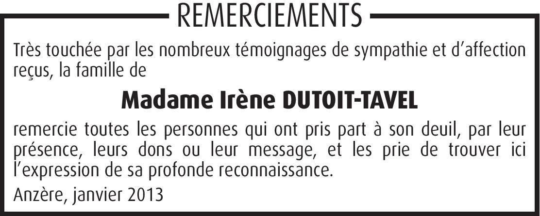 Vous souhaitez rester informé des nouveaux avis et condoléances pour ce défunt ?