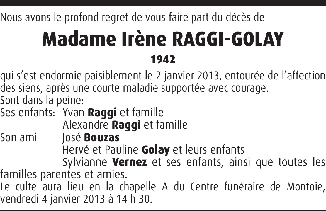 A vous dans la peine, je viens tardivement vous exprimer tardivement toute ma sympathie dans ce deuil qui vous accable. Alex Amiguet, camarade de confirmation 1958, église St Marc à Lausanne.