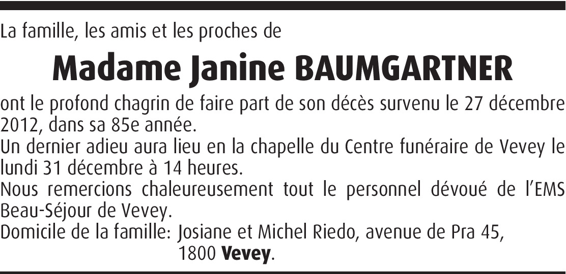 Il y a plus de 4 ans Signaler Adieu Chère cousine, merci pour ma belle enfance. repose en paix avec ton cher Emile. Tu resteras dans mon coeur. Pierrette et famille. Paul-Henri et famille. De la part de Pierrette Fickentscher-Perrin