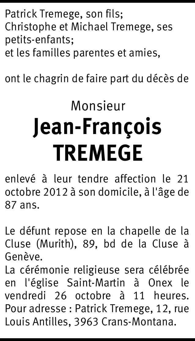 J'étais présent aux funérailles de votre papa et grand-papa, mais je n'ai pas eu l'occasion de vous serrer la main, pour vous dire que je partage votre douleur, face à cette séparation brutale. Courage.