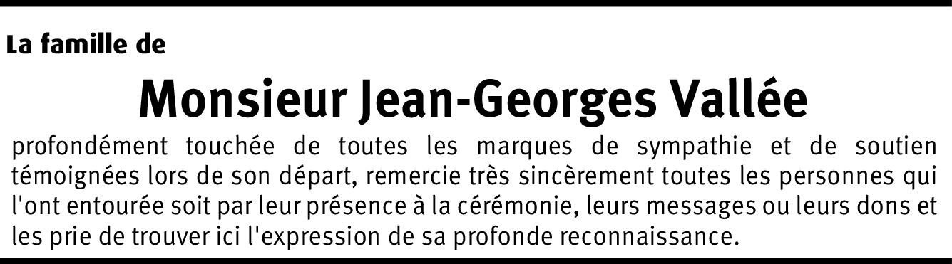 Les Anciens ESCP* de Genève expriment à la famille de Jean Georges Vallée(escp46)leur sympathie dans cette épreuve de la séparation.