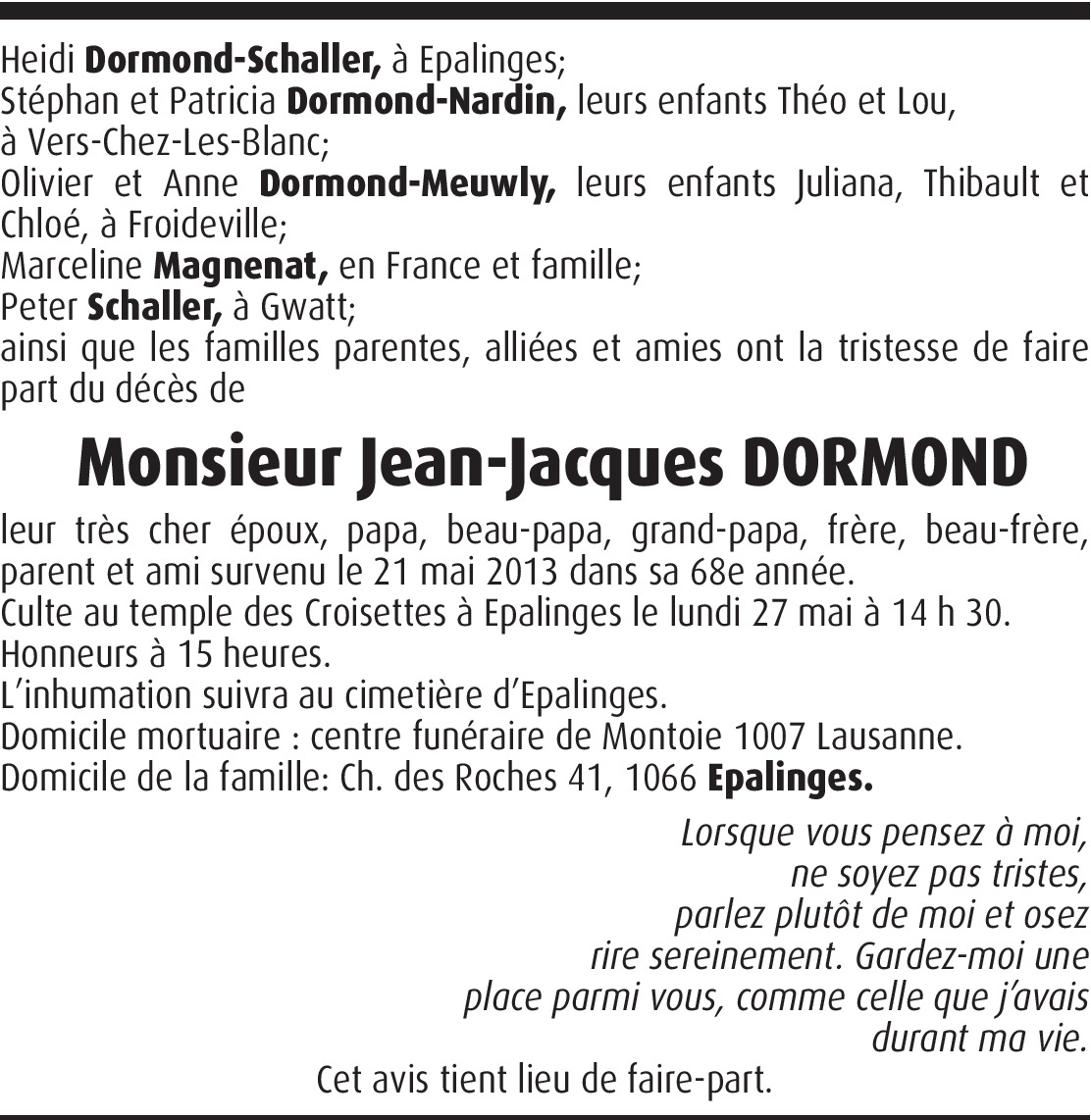Stéphan, Patricia, et famille, c'est avec beaucoup de tristesse que j'ai appris le décès de ton papa, beau-papa, grand-papa et mari. Raphaël et moi sommes de tout cœur avec vous dans ces douloureux moments de séparation. Amicalement.