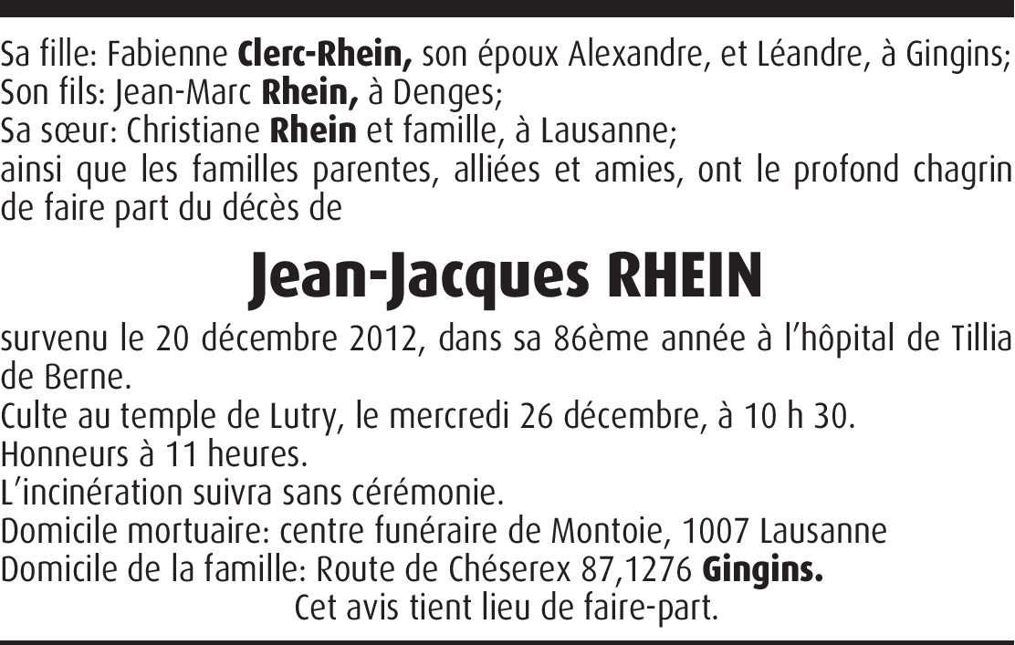 J'ai appris aujourd'hui lors de notre réunion à Beaulieu le décès de ton père. Bien que l'on s'attende toujours à cette triste éventualité, c'est un moment de son existence pénible à vivre, je le sais pour l'avoir connu il y a déjà de nombreuses années. Je ne peux que te transmettre les condoléances que me suggère ma profonde amitié pour toi. Avec toute mes pensées les plus affectueuses, Claude.