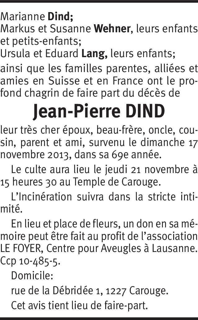 Par ces quelques ligne, je voudrais saluer celui que j'ai connu il y a 30 ans aux heures de gloire de la rue ST Joseph. Merci pour cette amitié sans faille depuis tout ce temps. Salut Jean-Pierre. Pour toi Marianne, mes sincères condoléances ainsi qu'à ta famille. En déplacement professionnel, je ne pourrai être présent.