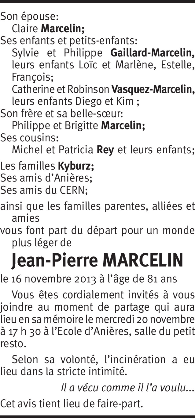 Chère Claire, avec beaucoup de tristesse nous avons appris le décès de Jean Pierre. Nous l'avons vu encore à Russin cet été avec Ninette et Mario. Nous nous souvenons encore des bons moments chez vous à Annier, très agréables. Il y a très longtemps. Avec des pensées de tout cœur, toute notre amitié pour toi restent. Meilleurs salutations de Jürgen et Karin.