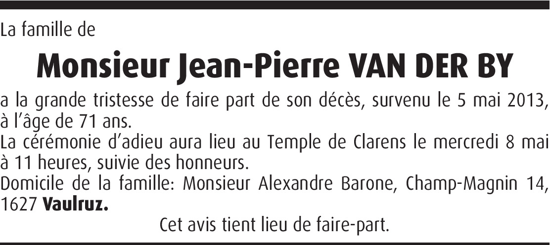 Vous souhaitez rester informé des nouveaux avis et condoléances pour ce défunt ?