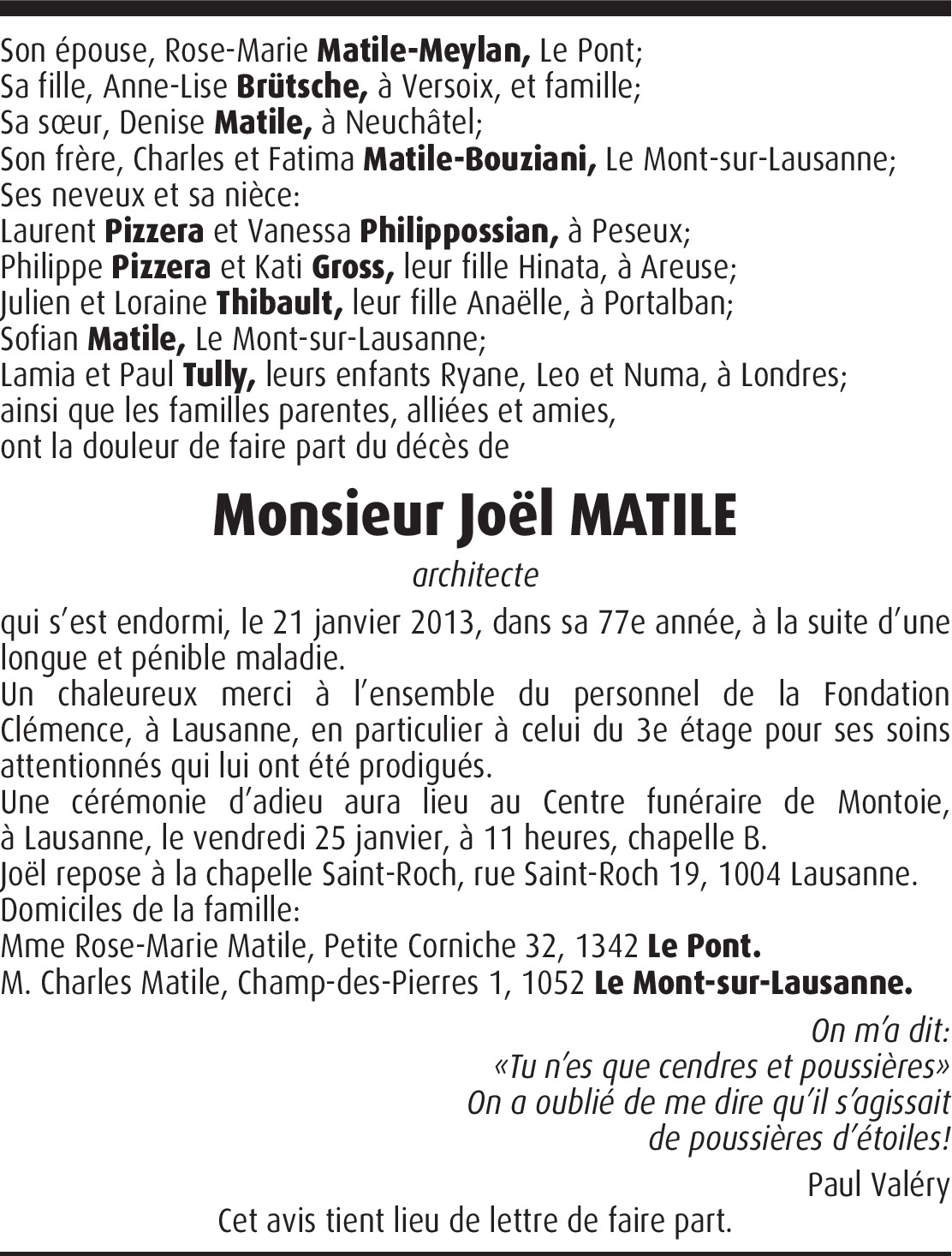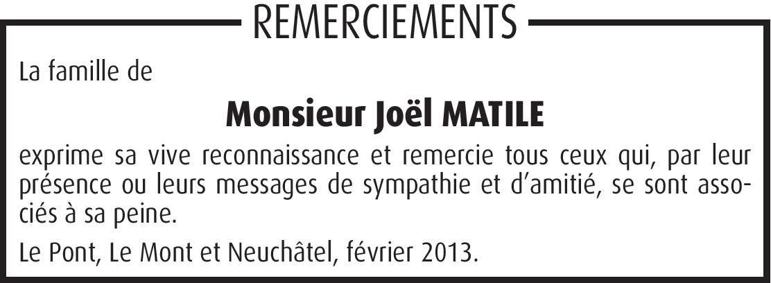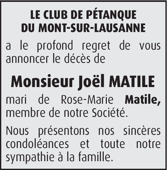 Il y a plus de 4 ans Signaler Mes sincères condoléances à son épouse, sa fille, sa soeur et toute la famille. Salut Joel, je perds un ami, Robert Dutoit Ste Croix De la part de Robert Dutoit