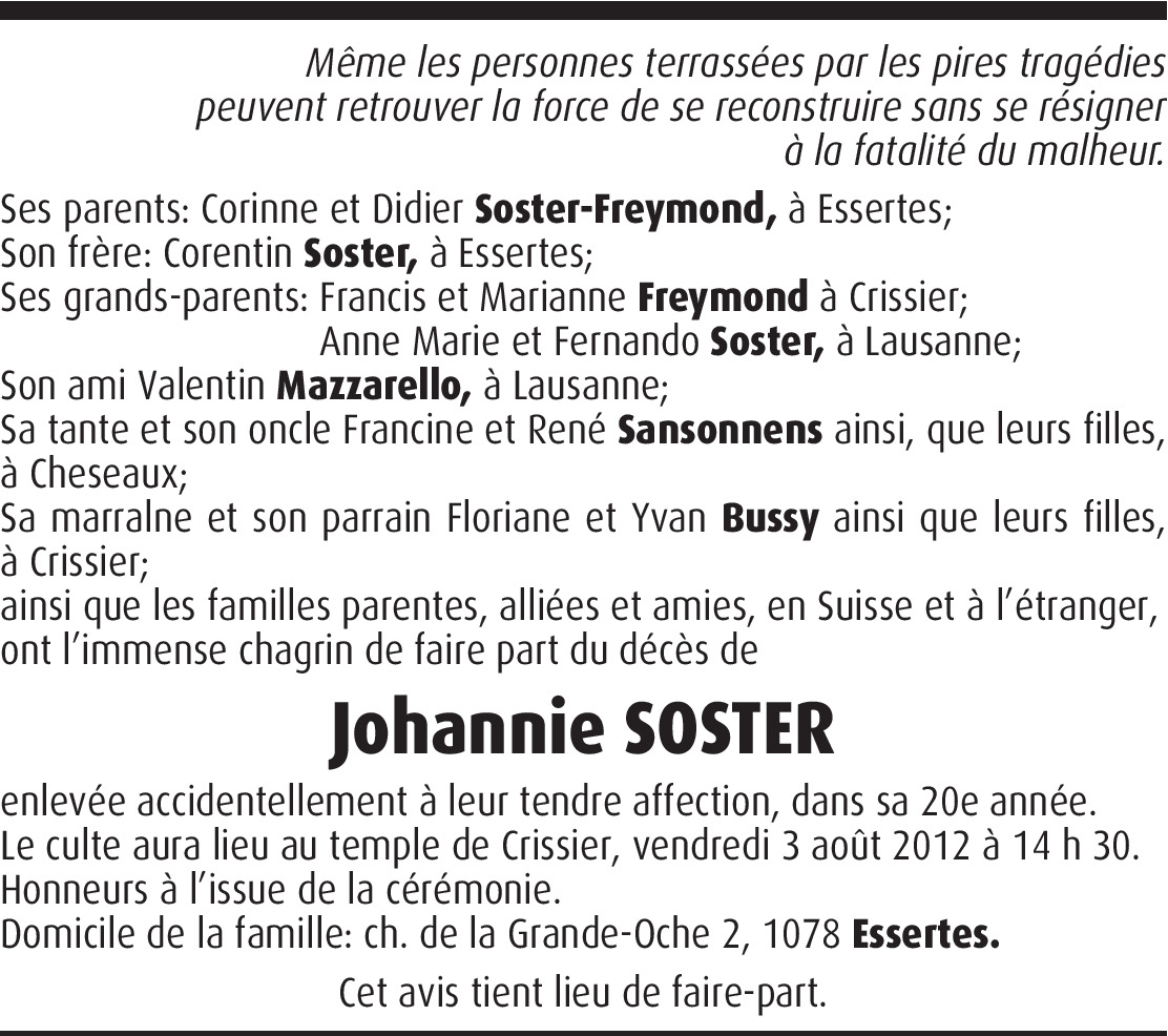 Vous souhaitez rester informé des nouveaux avis et condoléances pour ce défunt ?