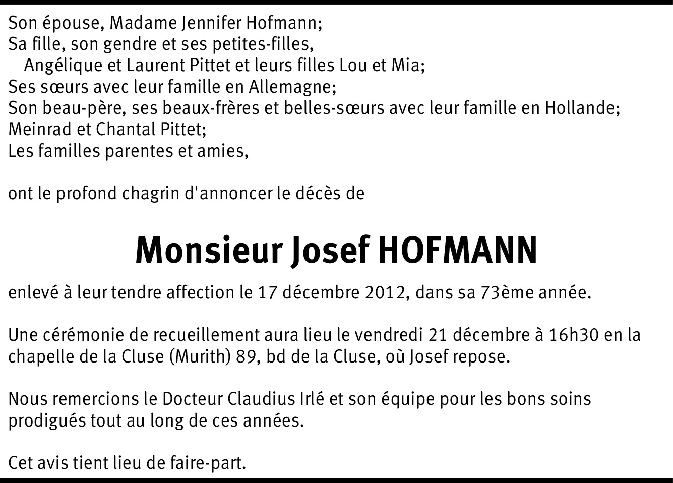 Vous souhaitez rester informé des nouveaux avis et condoléances pour ce défunt ?