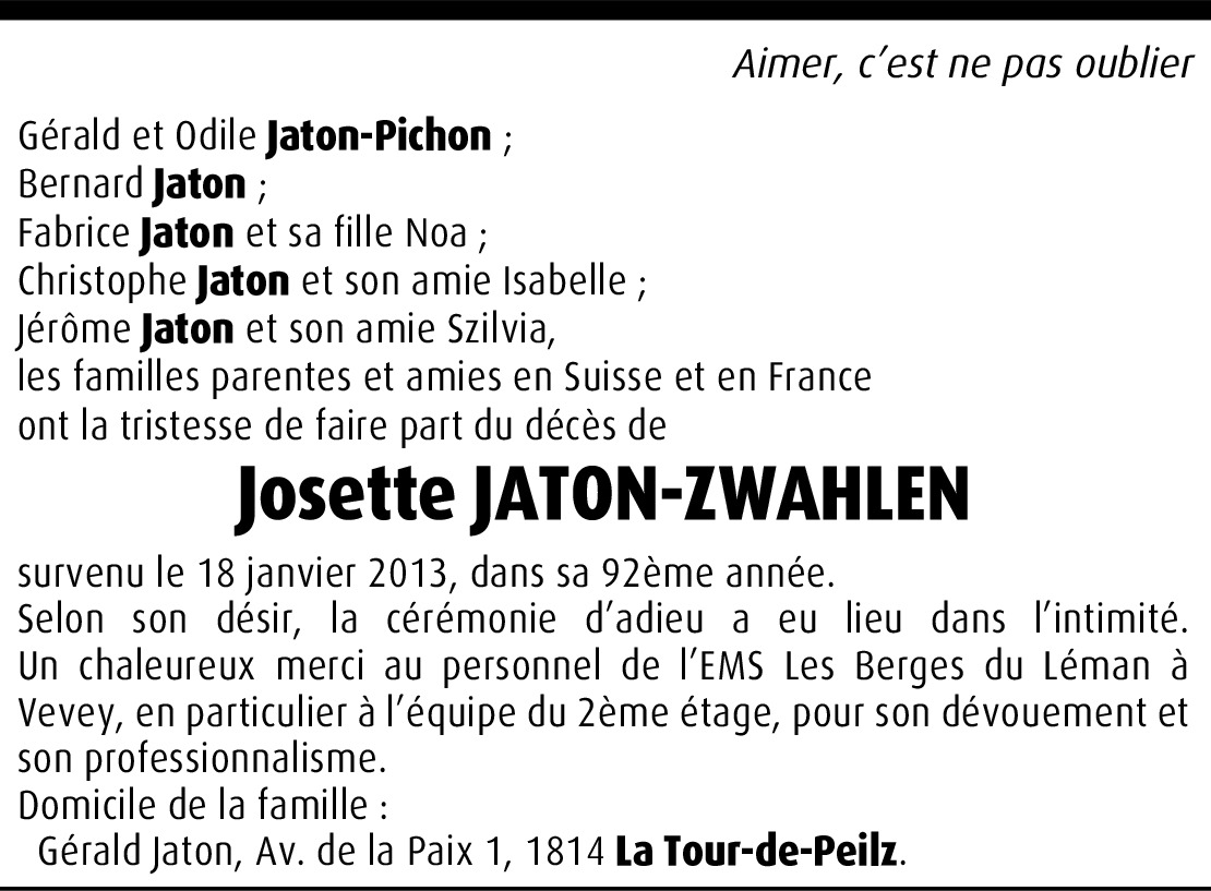 Il y a plus de 4 ans Signaler Toute ma sympathie à Fabrice Jaton pour la perte de sa grand-maman. J'ai apprécié qu'il le dise lors de la descente du Lauberhorn, c'est reconnaître leur relation de coeur à coeur! De la part de Suzanne Muller