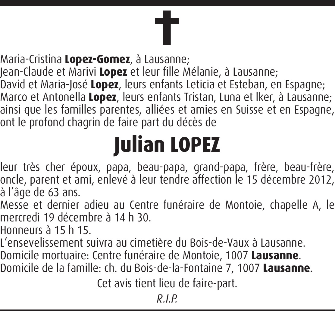 Vous souhaitez rester informé des nouveaux avis et condoléances pour ce défunt ?