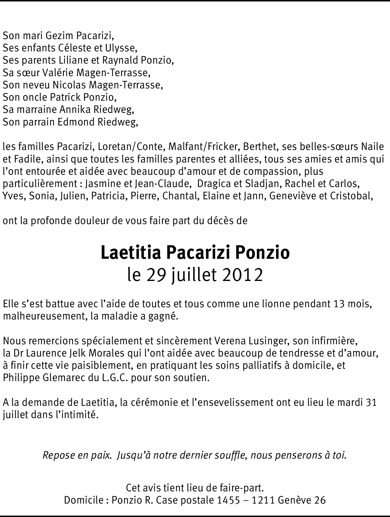 Dernière condoléances