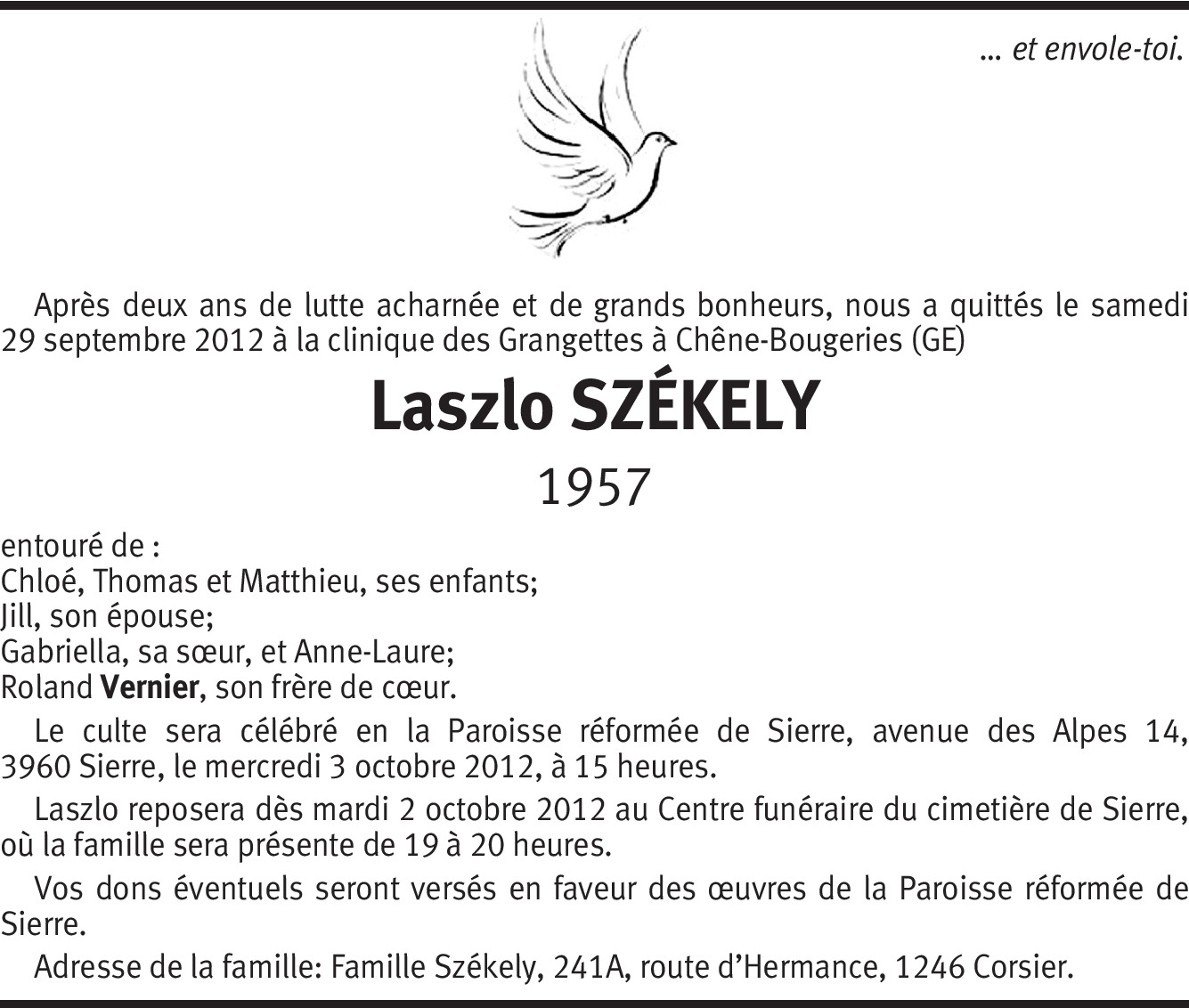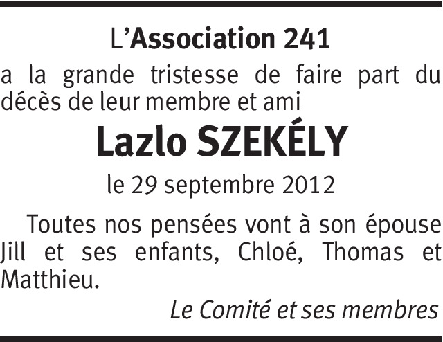 C'est avec stupéfaction et une infinie tristesse que j'ai pris connaissance de l'avis ci-dessus. Croyez bien que je conserverai un souvenir lumineux de votre époux. Je vous prie de croire, Chère Madame, à toute ma sympathie.