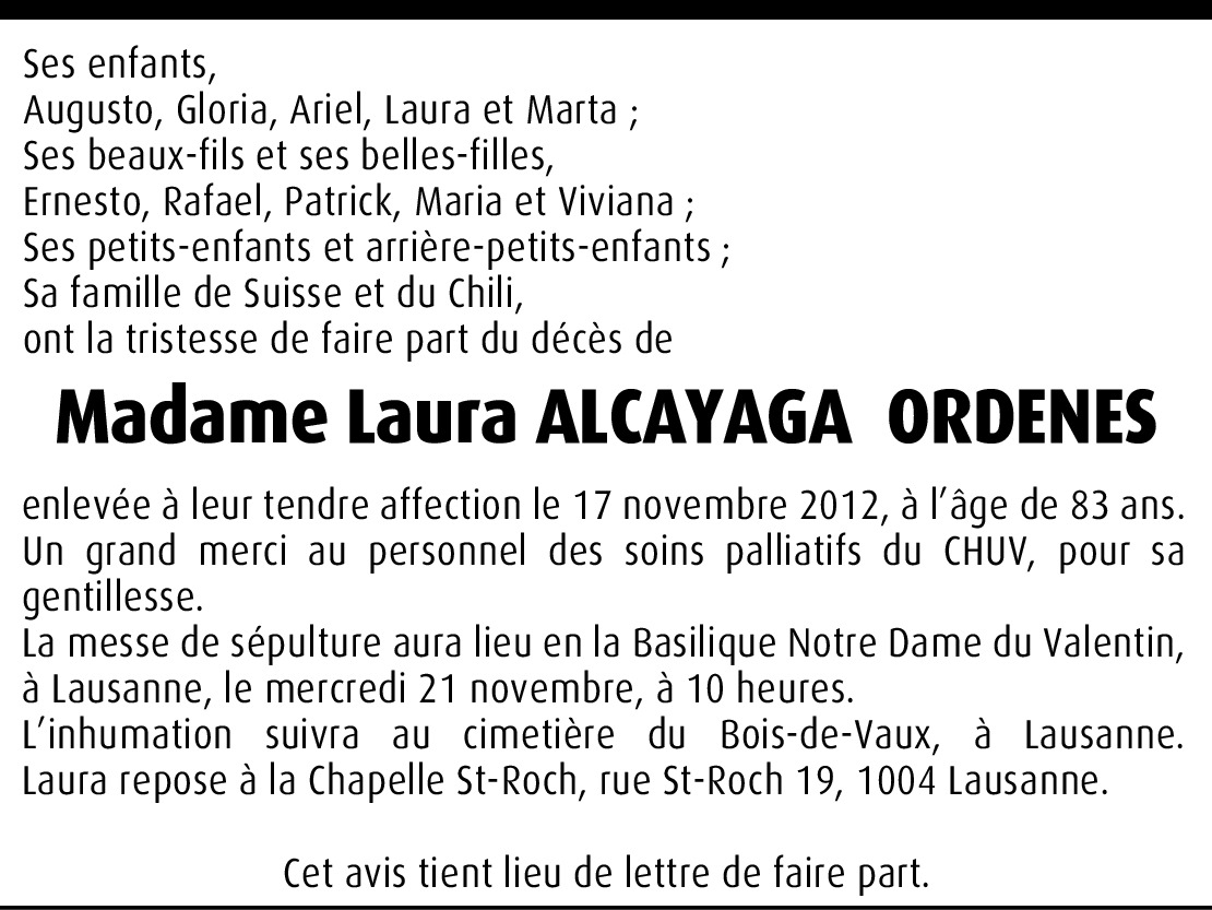 Il y a plus de 4 ans Signaler Querida familia, Nuestras sinceras condolencias por la perdida de vuestra querida Mamita QEPD. Familia Valenzuela De la part de Antonio Valenzuela