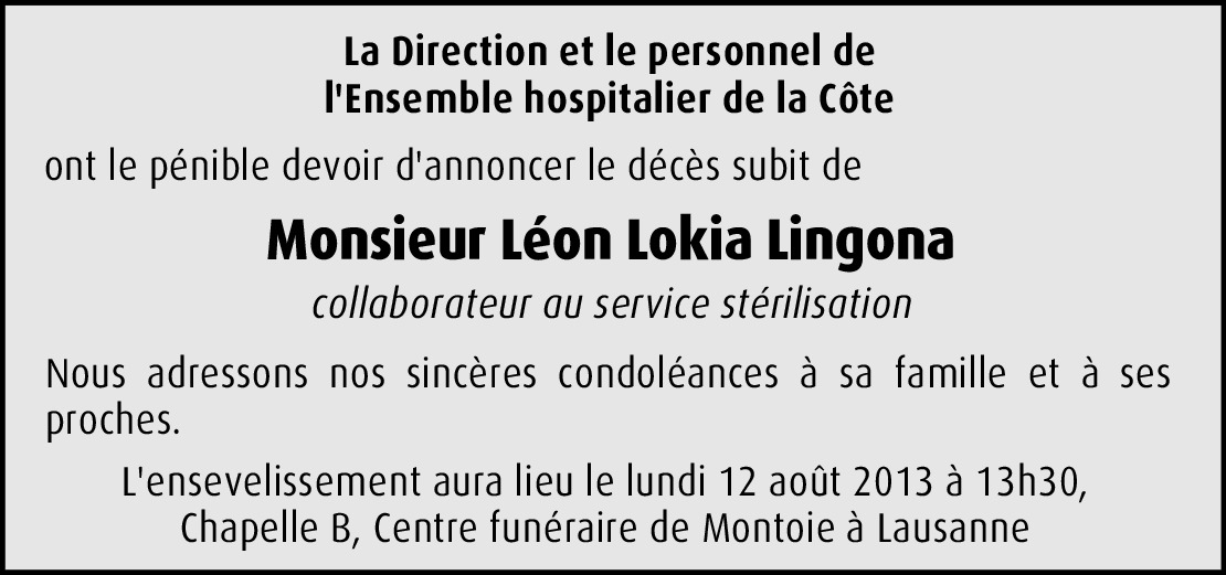 J'ai croisé la route du frère Léon Lokia en 1990 dans des circonstances très difficiles pour moi, à Kabinda. Il a été un grand guide pour moi, ses conseils m'ont permis de m'en sortir et de devenir celui que je suis devenu, il m'a appris à prier, à chanter pour louer le Seigneur. Depuis, mes yeux ne t'ont plus vus et au moment où je te retrouve grâce à internet, c'est justement le moment que le Très-Haut a décidé de te reprendre. Je suis effondré, abattu et profondément touché...j'ai été chez tes parents dès que je suis arrivé à kin et j'ai appris que tu étais en France, je suis TRISTE! Un HOMME juste et sincère en amitié, je te pleure grand-frère, j'aurai voulu te voir, te raconter toutes ces victoires que j'ai pu glanées grâce à tes sages conseils! Je sais que tous ceux qui ont croisé ta route ont reçu un peu de ta joie, ta bonne humeur et le vrai amour de Dieu qui t'habitait. Grand-frère, repose en paix, ton petit, Didier K.