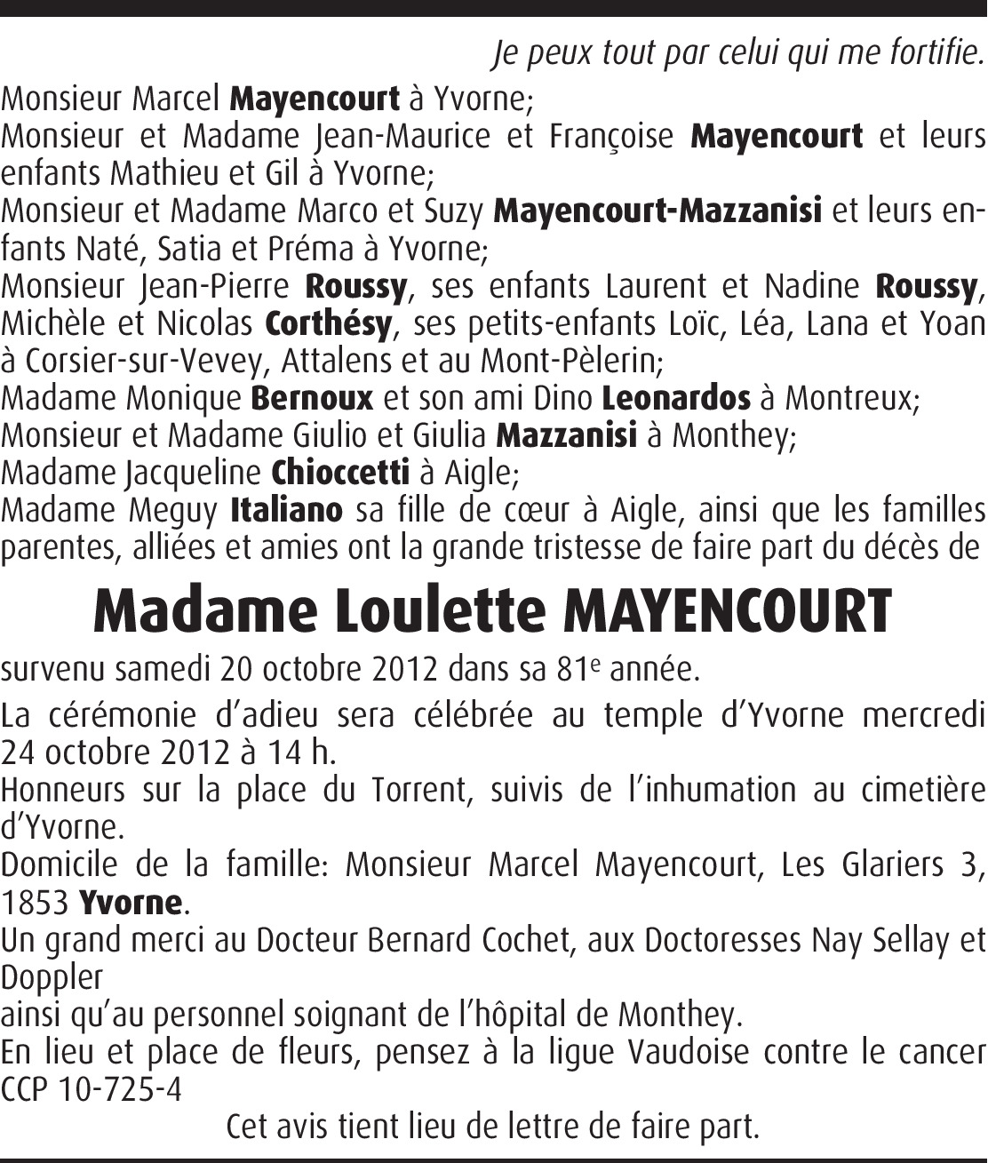 Comme le verset d'entête l'indique, que Dieu, dans ces moments douloureux et pénibles, soit votre force, votre soutien et votre secours... en toutes choses.