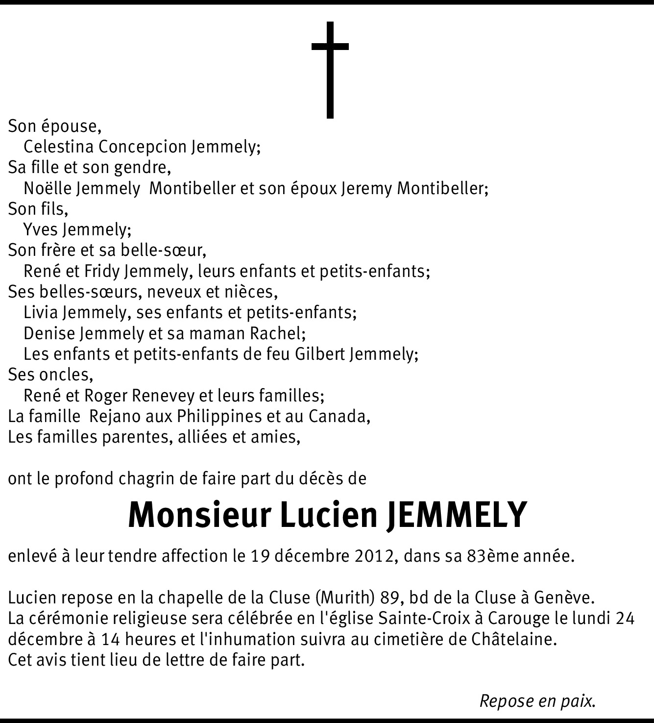 Il y a plus de 4 ans Signaler Chère famille, n'ayant pu être à vos côtés pour l'adieu, je tiens à vous présenter mes sincères condoléances. J'ai peu connu Lucien, mais j'ai beaucoup apprécié les quelques moments passés avec lui !! De la part de Stéphane Chevalier