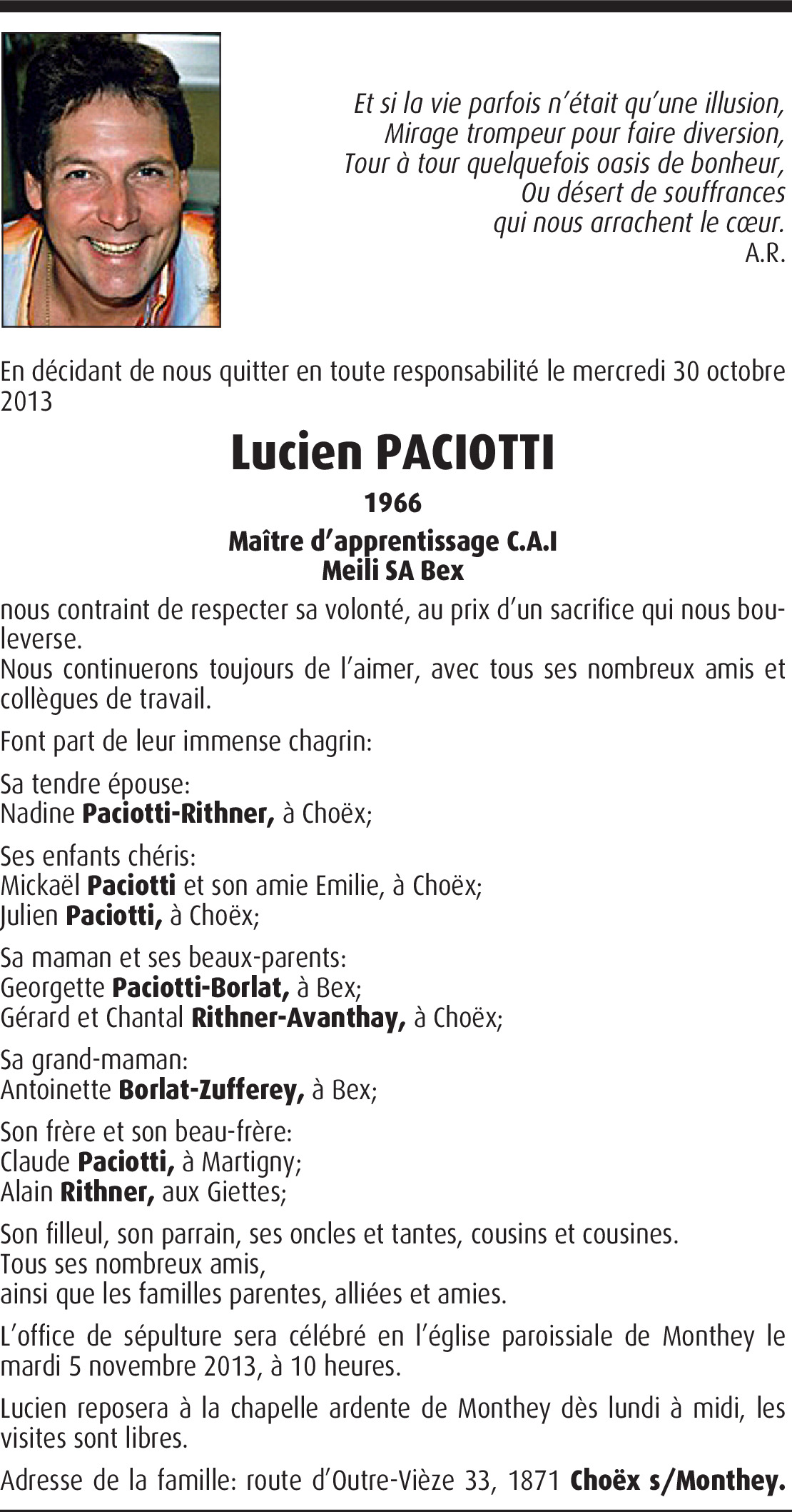 C'est avec une vive émotion que nous avons pris connaissance du décès de Lucien. Nous sommes de tout cœur avec toi et tes enfants. Soyez forts, comme Lucien aurait sûrement voulu que vous le soyez...