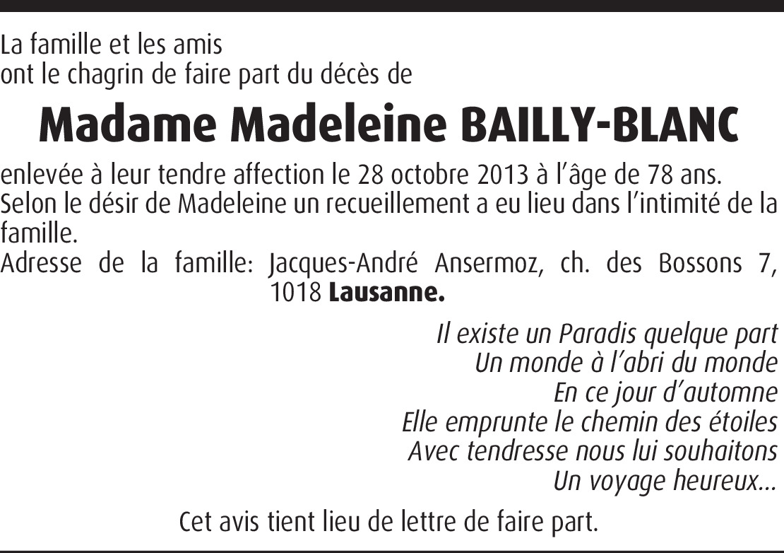 Madeleine, il n'y pas un jour où je ne pense pas à toi. Merci pour tout ce que tu m'as apporté, pour nos rires, nos balades en forêt avec Eti et Rashley, nos aventures en France, tes incroyables confitures, ton soutien et ton amour. Ton balcon sans tes beaux géraniums n'est plus le même. Tu es dans mon cœur à jamais. Tu me manques toujours autant.