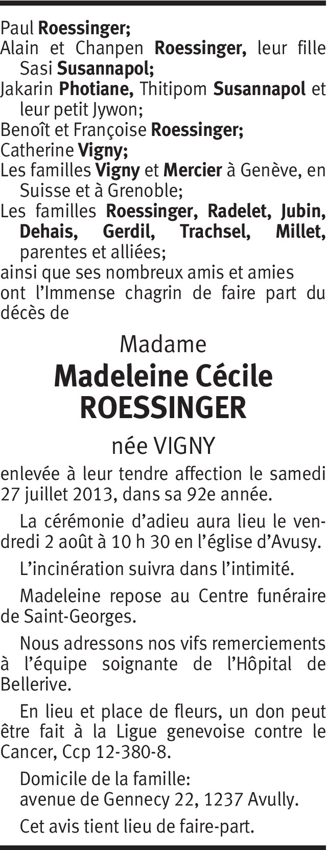 Madeleine Cécile Roessinger Vigny