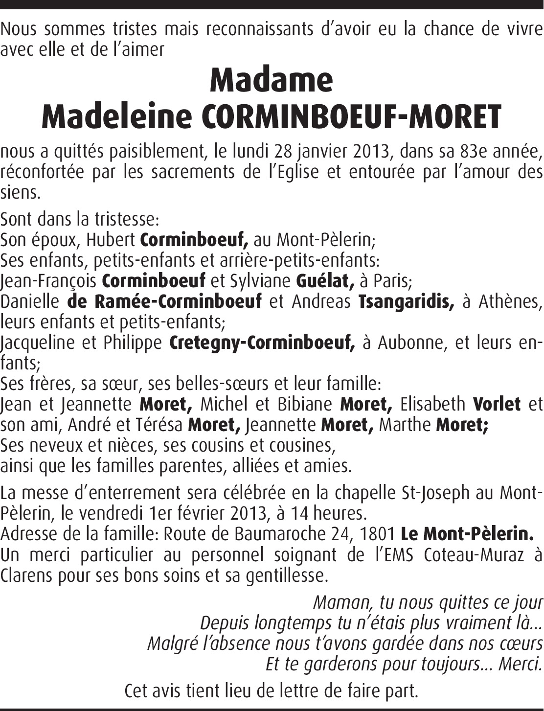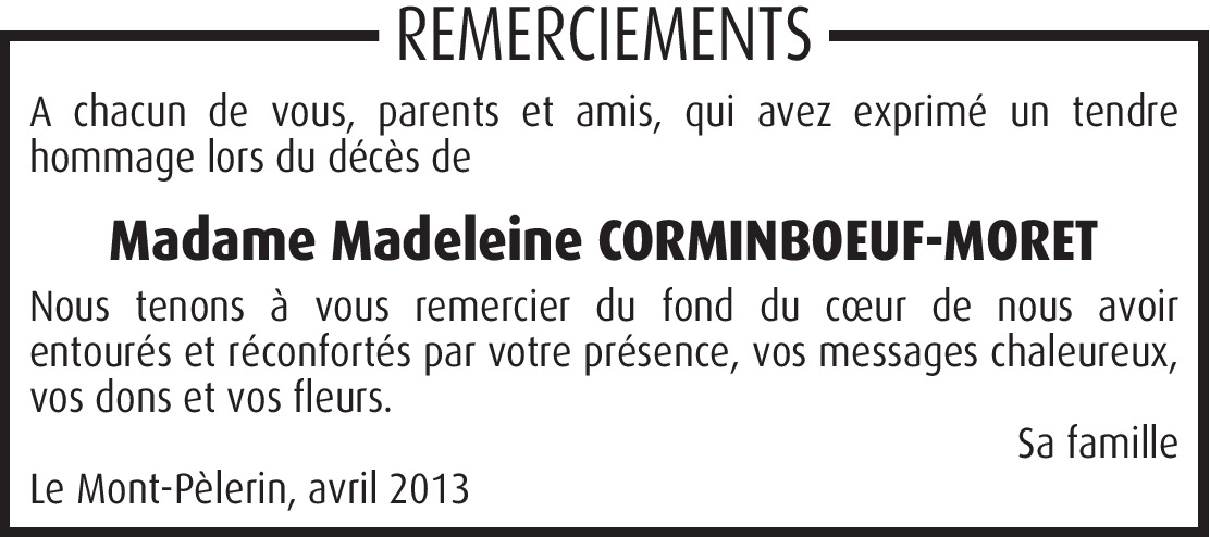 Il y a plus de 4 ans Signaler Très chère famille, C'est avec tristesse que j'apprends le décès de tante Madeleine. Je garderai toujours de merveilleux souvenirs, en pensées avec vous. Mariepaule. De la part de Mariepaule Ngo-Ropssie