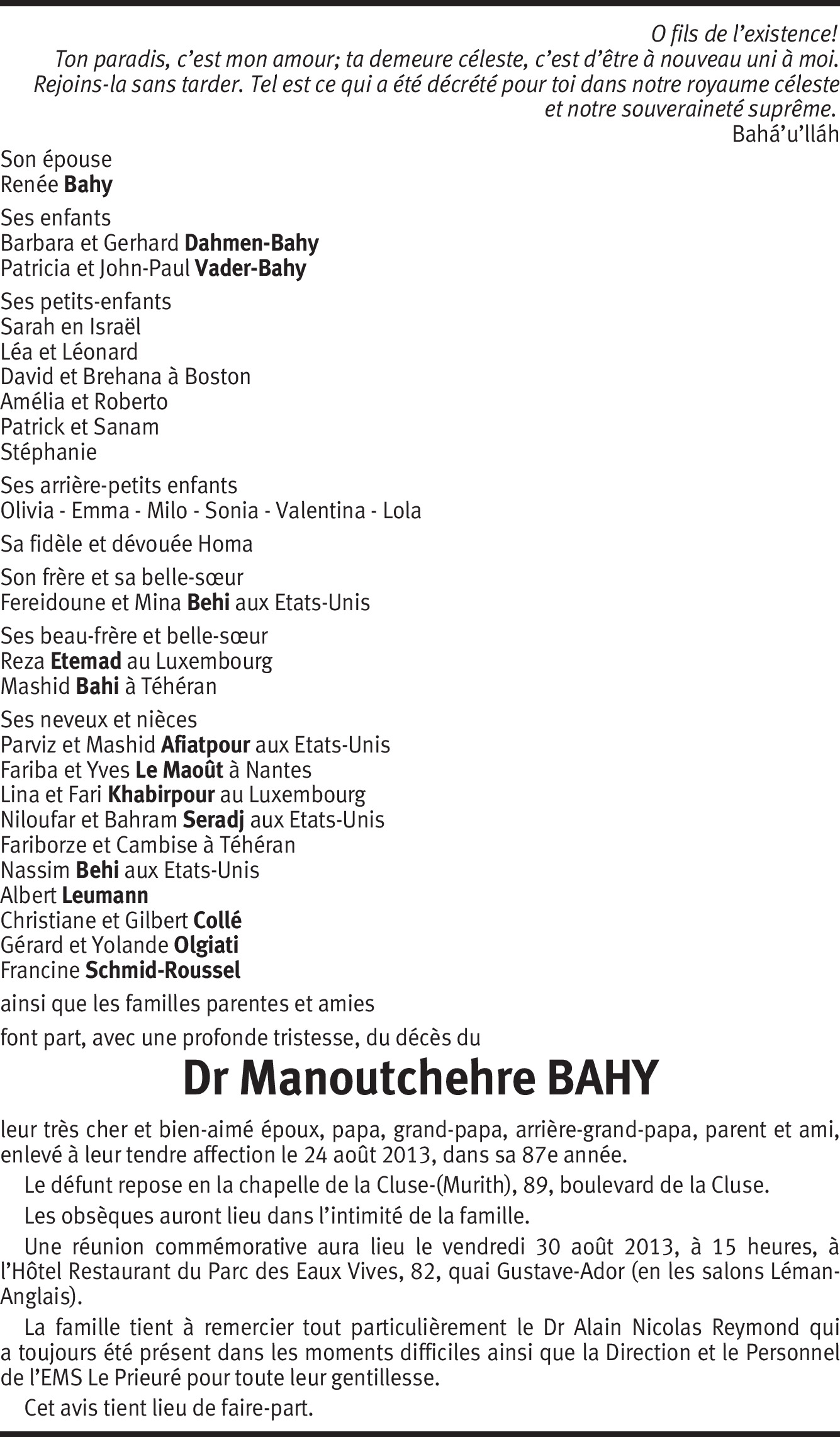 Vous souhaitez rester informé des nouveaux avis et condoléances pour ce défunt ?