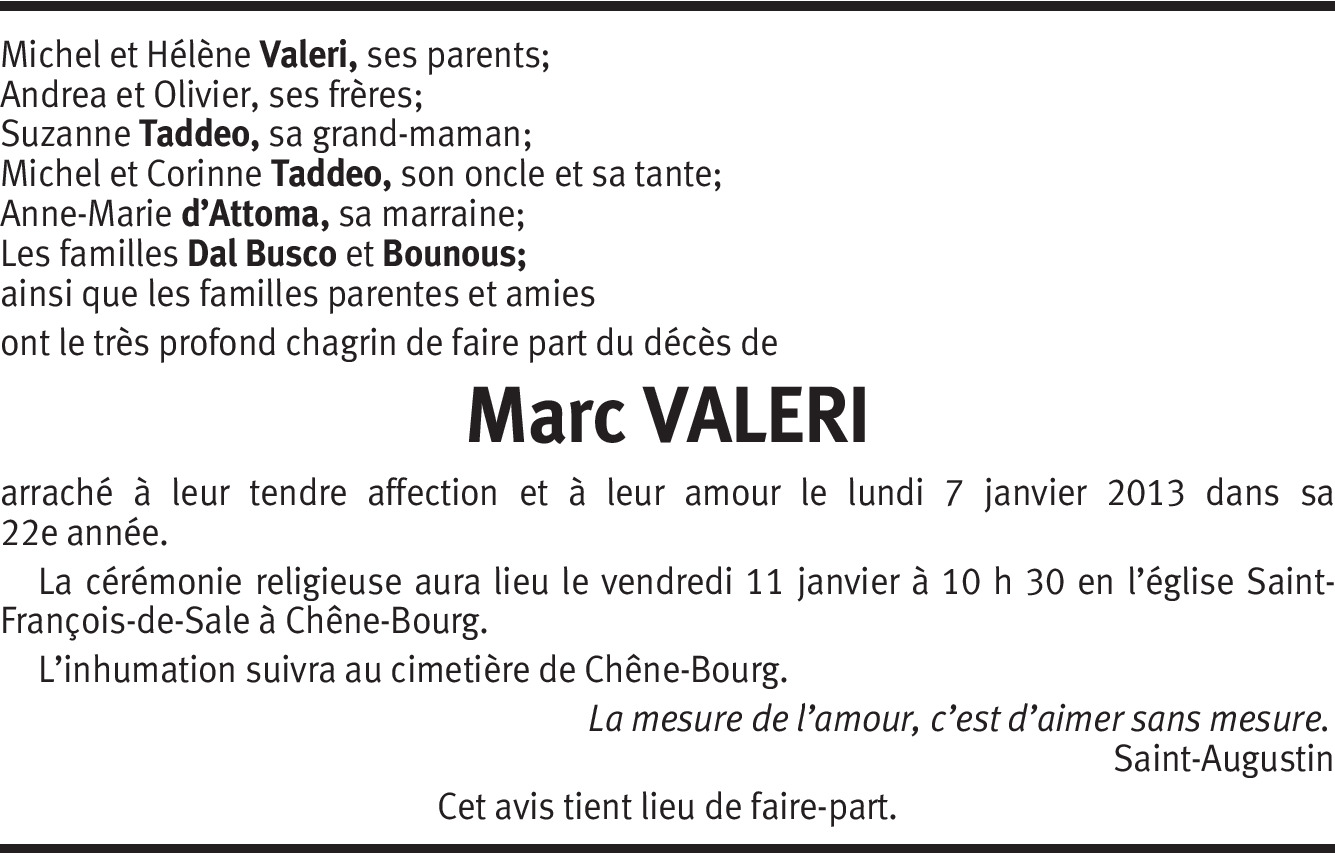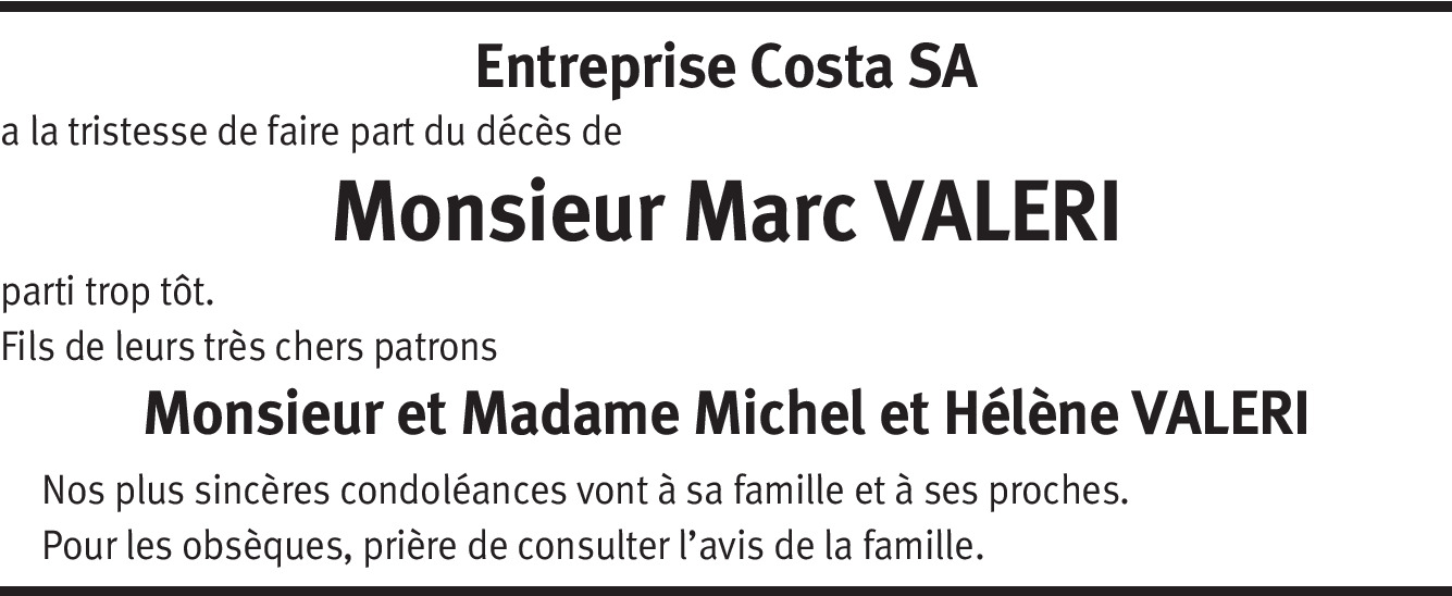 Nous sommes bouleversés d'apprendre le décès de Marc et sommes de tout cœur avec vous tous en ces jours d'immense tristesse. Veuillez croire en notre profonde sympathie et accepter nos sincères condoléances. Robert et Bernadette Abegglen.