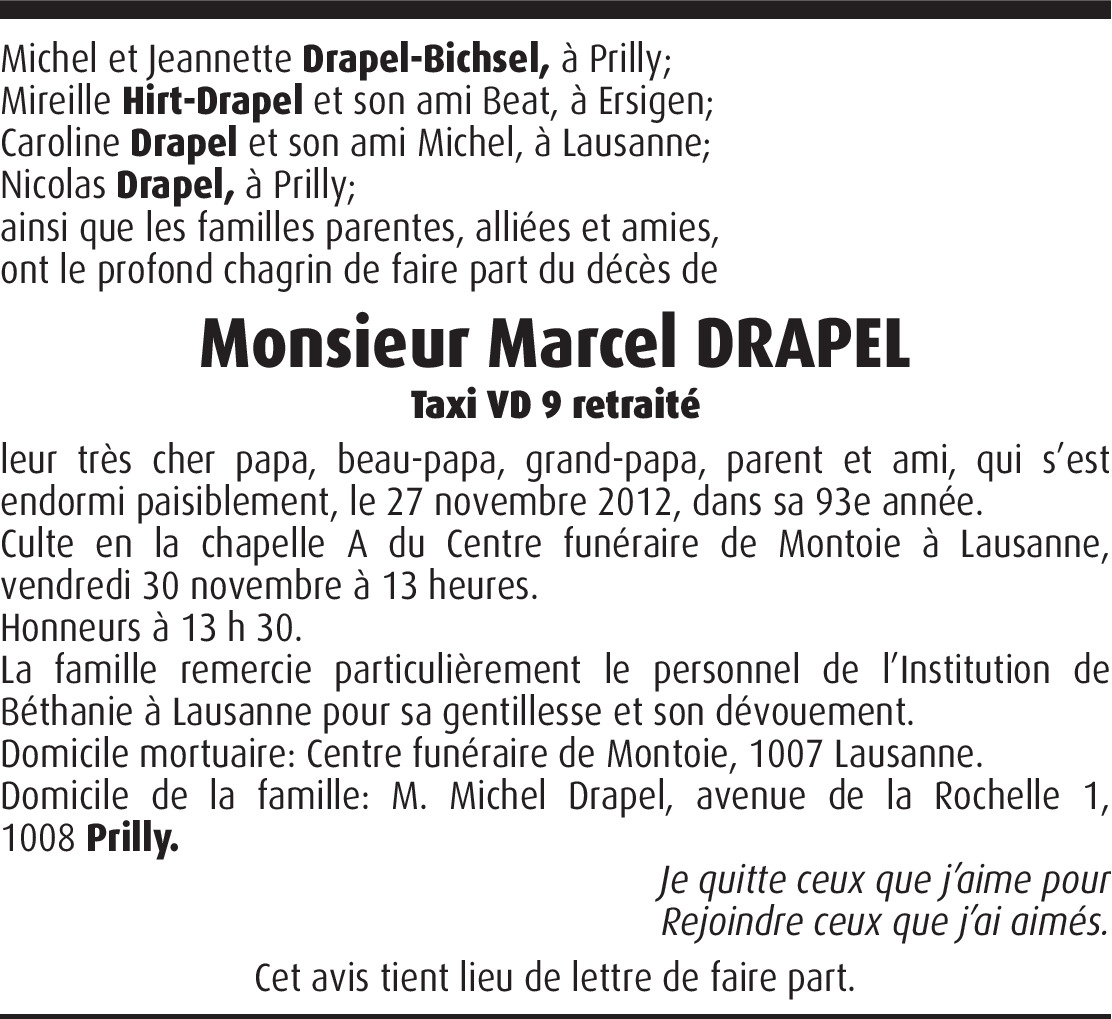 Chers Mireille et Michel et vos familles,c'est avec tristesse et émotion que j'ai appris le décès de votre papa. Cela a fait ressurgir beaucoup de souvenirs de notre enfance et jeunesse en mon cœur, période ou nous étions tous à Ste-Luce et moi à la Grotte. Du fond de mon cœur recevez mes plus sincères condoléances et toute ma sympathie... Daisy Legeret-Favre