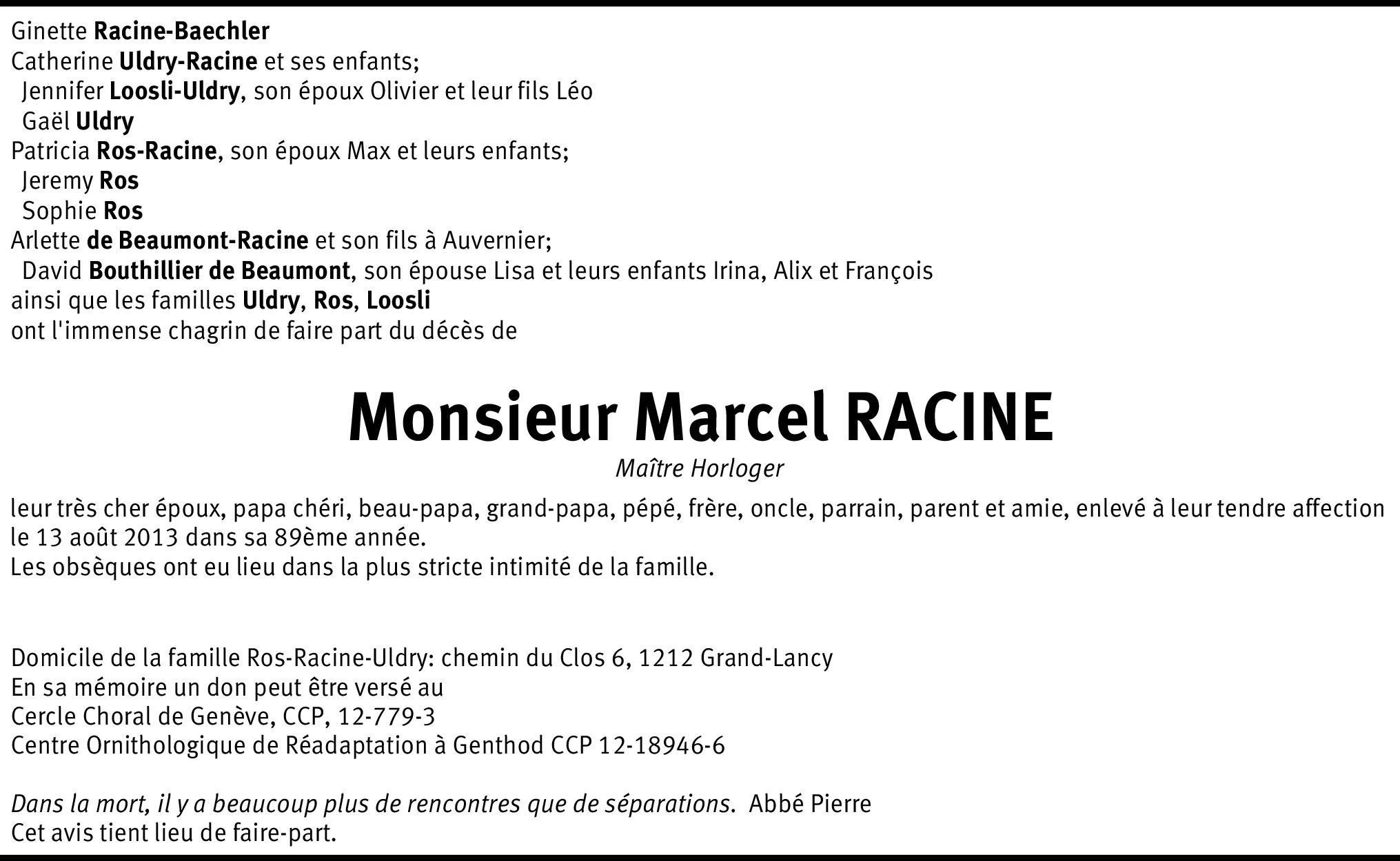 De la part de Uldry-Racine