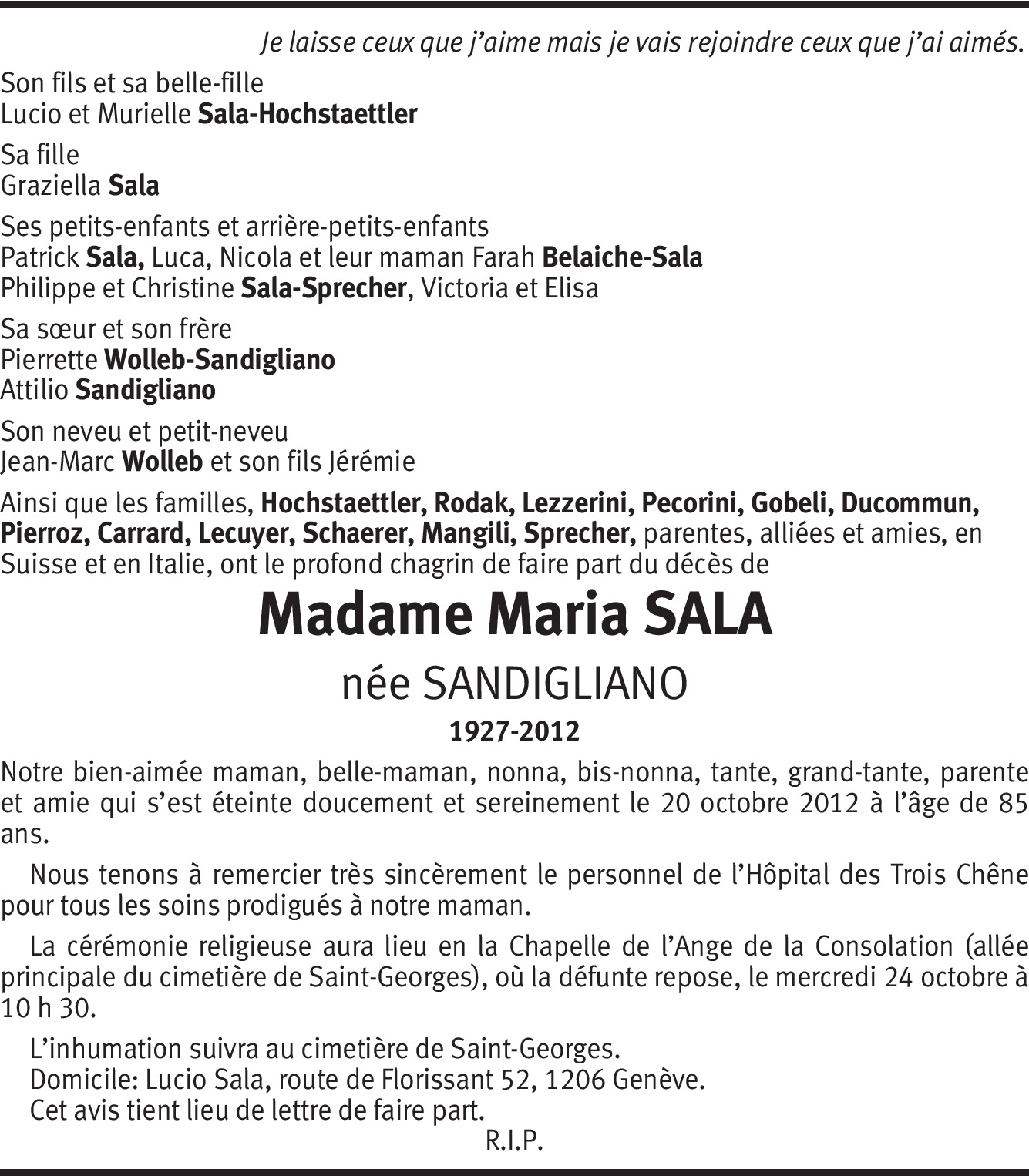 Dernière condoléances