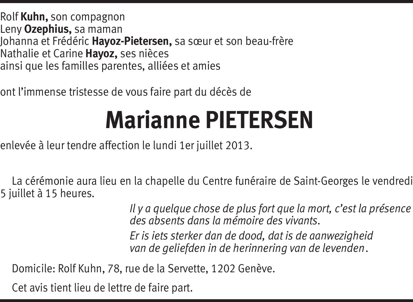 Tot mijn spijt lees ik 4 jaar later dit overlijdensbericht.