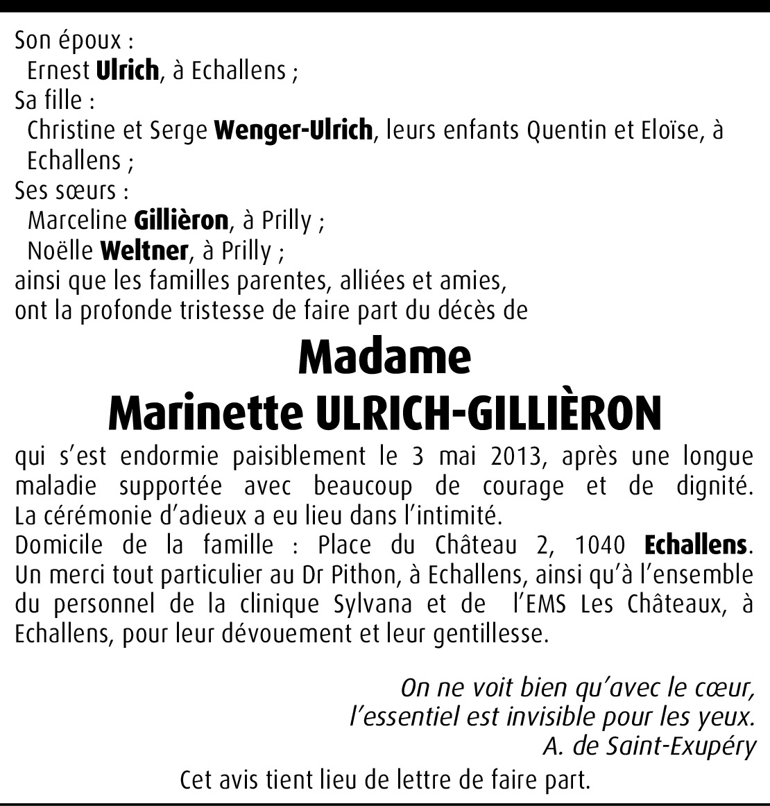Il y a plus de 4 ans Signaler En pensées avec vous durant ces moments douloureux de la vie. Avec notre Amitié. Faby et Claude De la part de Fabienne Chautems