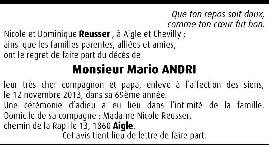 Vous souhaitez rester informé des nouveaux avis et condoléances pour ce défunt ?