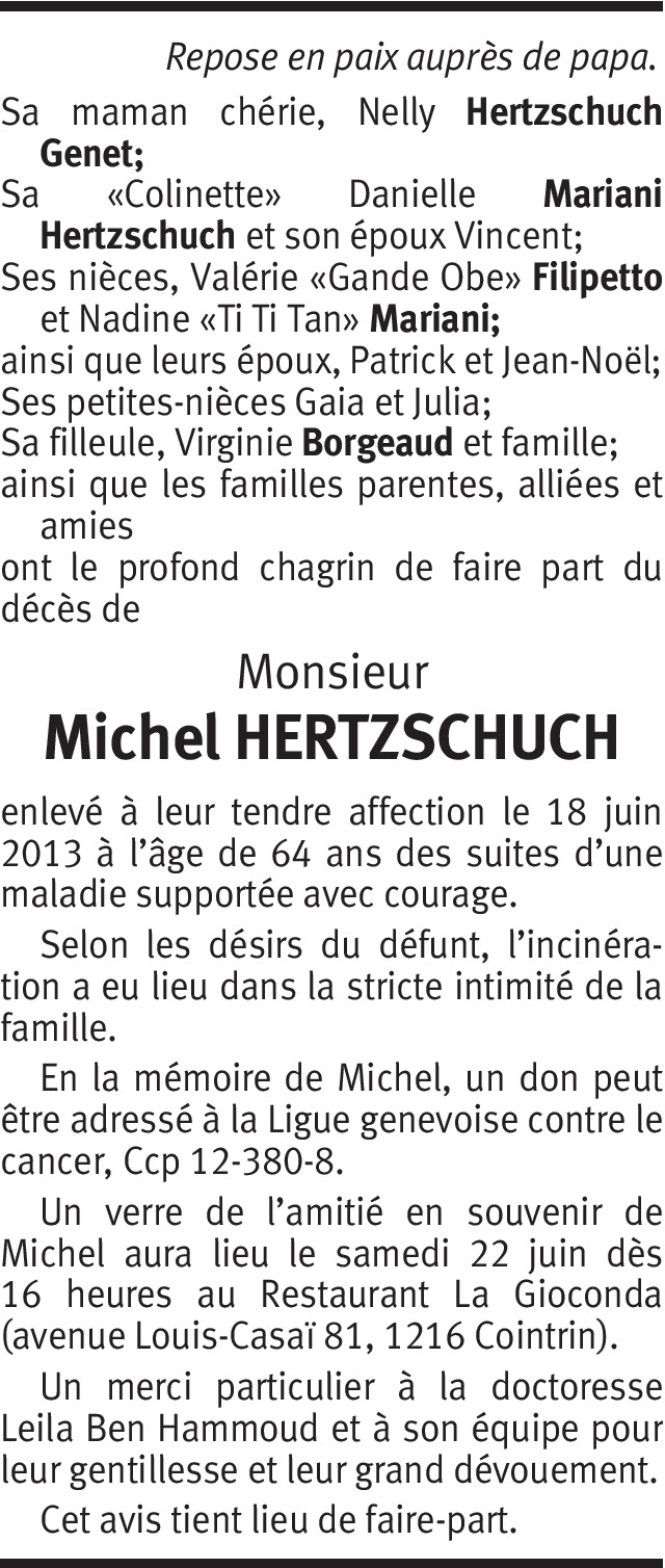 J’adresse toutes mes condoléances à la famille et aux proches de Michel. Il a été mon employeur quelques temps, mais plus que ça, c’était une personne fort sympathique, à l’écoute des autres et qui avait le cœur sur la main.
