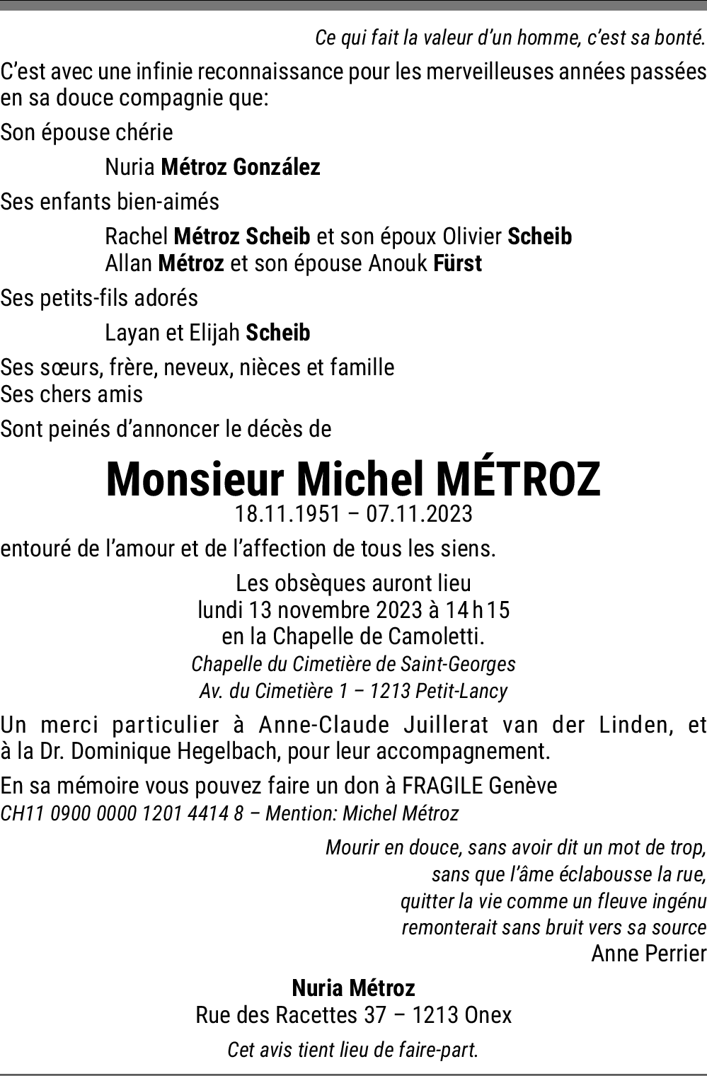 Vous souhaitez rester informé des nouveaux avis et condoléances pour ce défunt ?