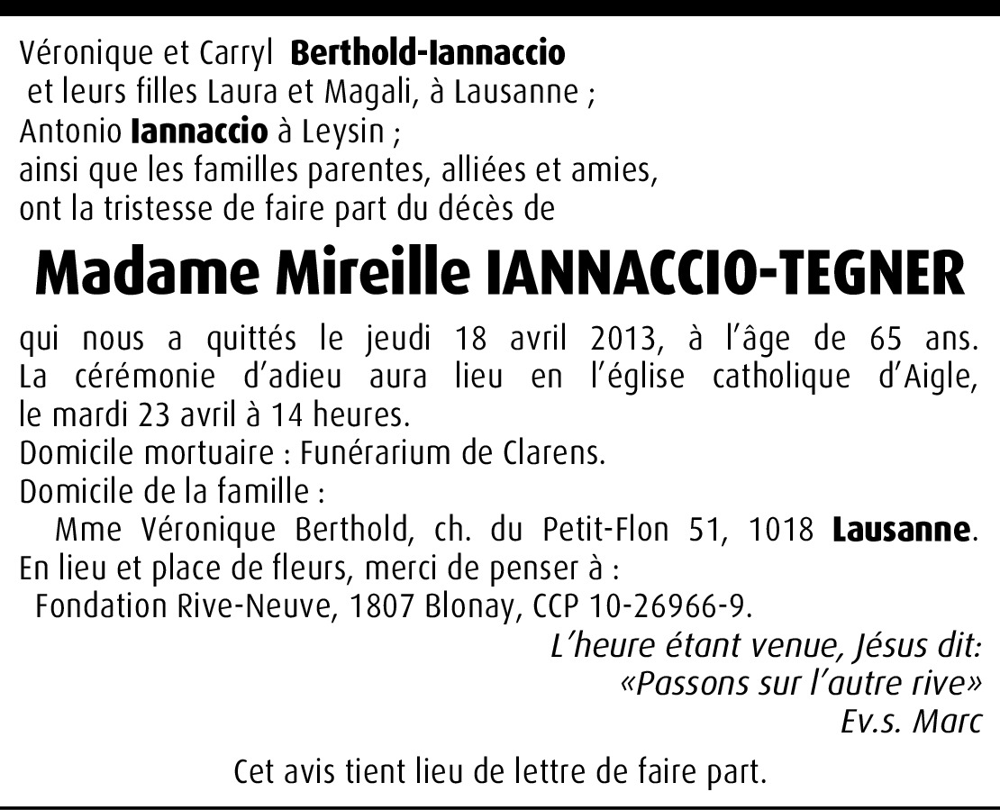 Mireille je te connais depuis mon enfance ou tu venais en visite dans notre chalet à Leysin. Tu étais une amie à ma maman Claudine, qui est décédée en juin 2012. Vous êtes maintenant réunie. La vie passe si vite... Je garderai un bon souvenir de Mireille. J'adresse mes sincères condoléances à la famille.