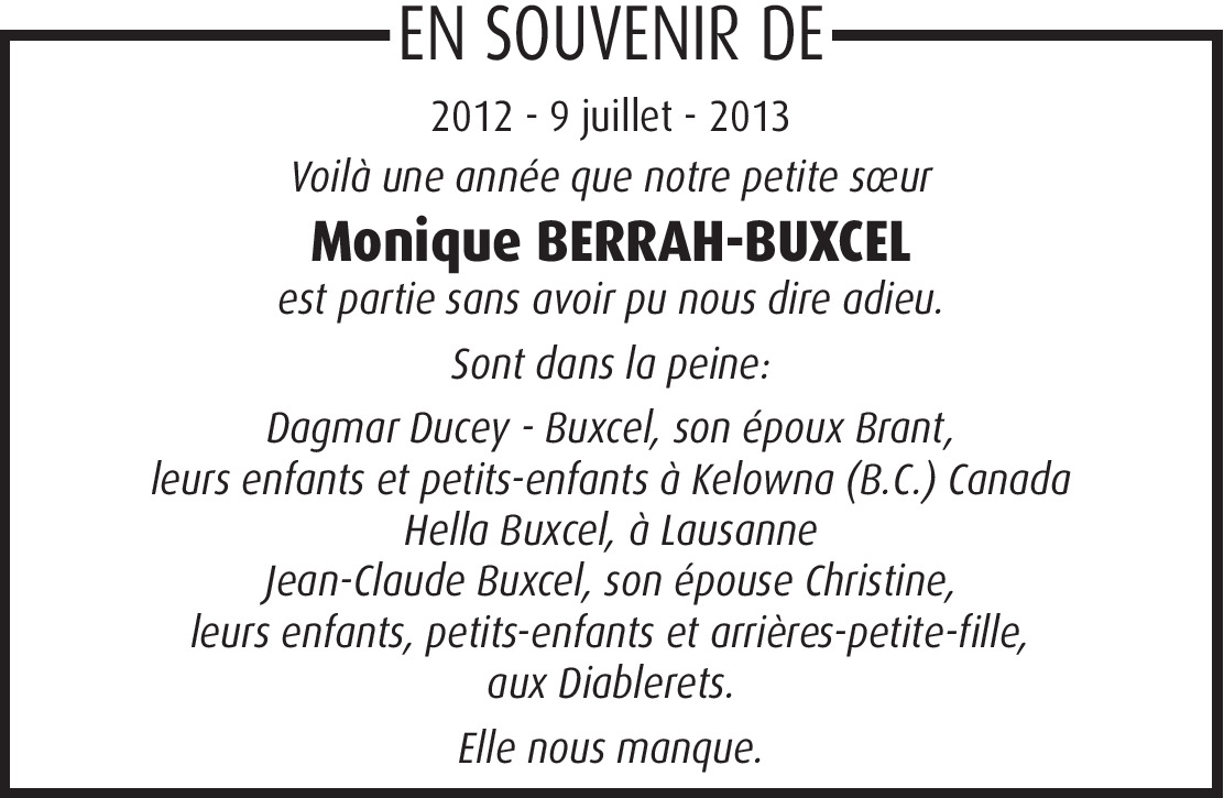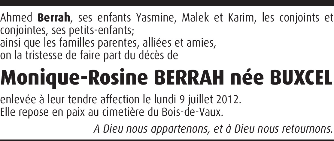 Que de souvenirs et des bons. Repose en paix tante Monique et sur ce mes sincères condoléances a tonton Ahmed, Karim, Malek et Yasmine. Votre cousin Nadjib d'Alger.