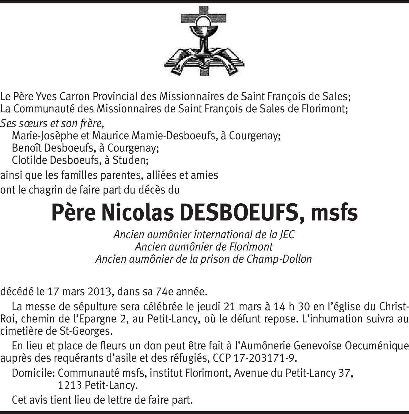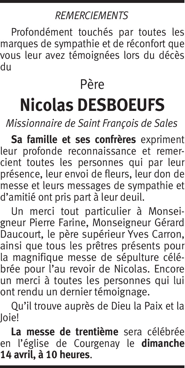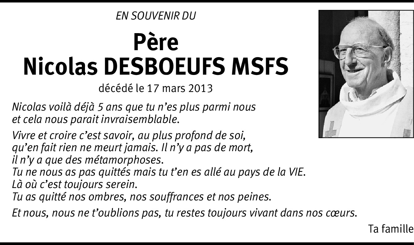 Il y a plus de 4 ans Signaler Condoléances à toute la famille. J'ai été baptisée en 1995 par le père Nicolas à Abidjan en CI où les parents l'ont hébergé pendant une semaine. Grande douleur dans nos cœurs. De la part de Regina Koutouan