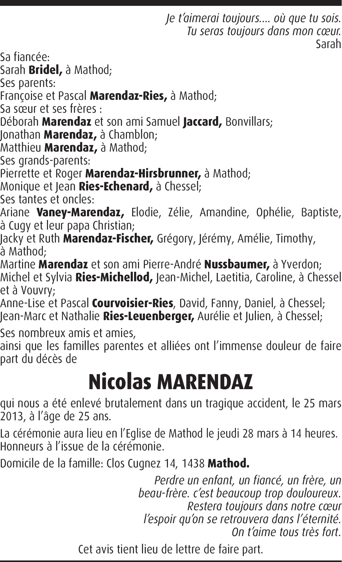 Dernière condoléances