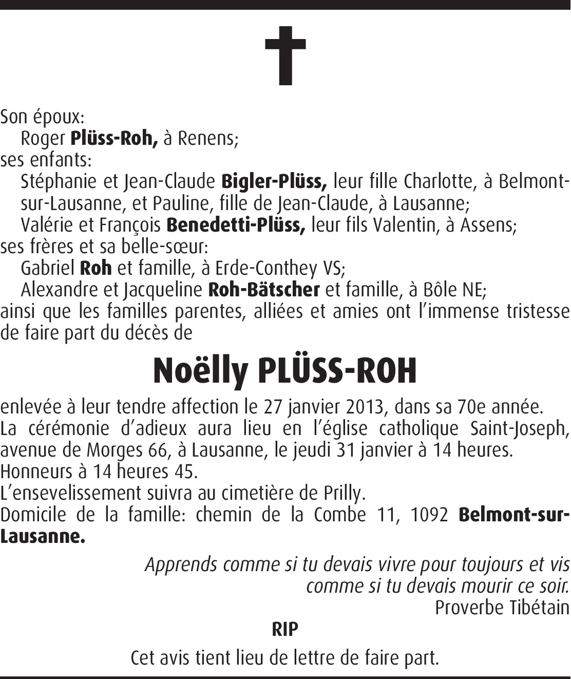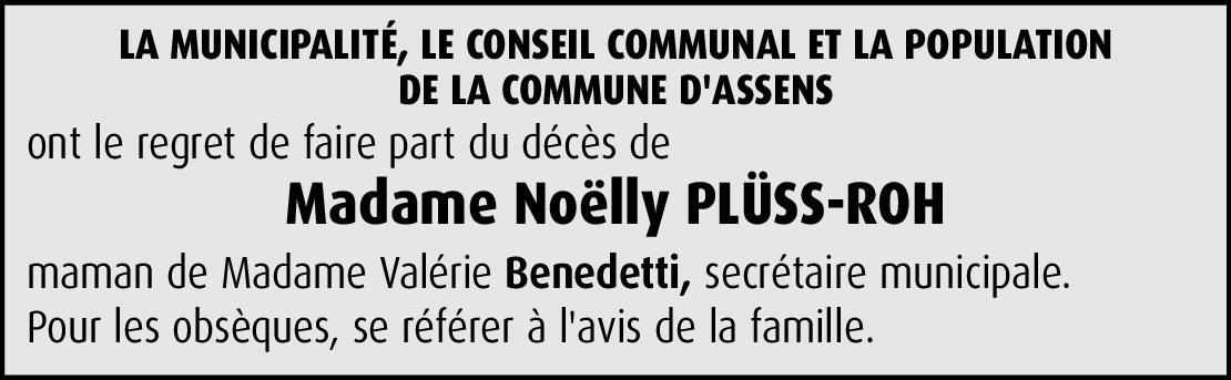 C'est avec consternation que j'apprends le décès de Mme Plüss. A toute la famille, je vous adresse mes pensées émues.