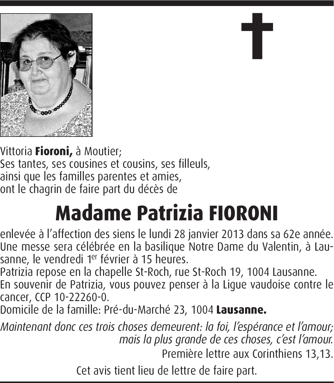 Il y a plus de 4 ans Signaler Mes sincères condoléances. Je suis heureuse de l'avoir connue. De la part de Sofia Aceiton